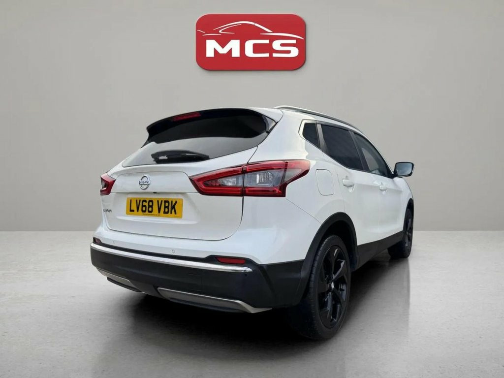 This 2018 Nissan Qashqai DIG-T Tekna presents an exceptional ownership proposition, boasting a single owner from new and a remarkably low mileage of just 49,000 miles for its age, complemented by a full dealership service history and a clear vehicle history check. This Euro 6 compliant 1.3 litre petrol model is equipped with the desirable Glass Roof Pack, featuring a fixed panoramic sunroof, and the Safety Shield Plus system which includes Blind Spot Assistance. Inside, you will find the Nissan Connect 7in touchscreen navigation and entertainment system, compatible with Android Auto and Apple CarPlay, alongside the Executive and Heat Packs, both offering heated seats for enhanced comfort. Further enhancing its appeal, this Qashqai benefits from a low insurance group, making it an economical choice for many drivers. Its low CO2 emissions also highlight its efficiency, indicating it is a more environmentally conscious option compared to many similar vehicles. A 3 month warranty is included, providing peace of mind for its next owner. 19in Alloy Wheels, 3 Height Adjustable Rear Headrests, 60-40 Split Rear Folding Seats, AM-FM-CD Audio System with DAB, AUX Socket for MP3 Player, Advanced Drive Assist Display - 5in TFT , Ambient Lighting Centre Console, Auto Wipers, AutoHold Function - Stand Still Assist, Bluetooth with Audio Streaming, Body Coloured Door Mirrors, Body Coloured Handles, Boot Light, Bose 8 Speaker Premium Audio System, Carbon Graphite Dash Trim, Centre Console Storage and Armrest, Chrome Glass Surround, Chrome Interior Door Handles, Cruise Control with Speed Limiter, Daytime Running Lights Dip Function When, Drive Assist Pack, Driver Seat Height Adjustment, Driver-Passenger-Side and Curtain Airbag, Drivers S