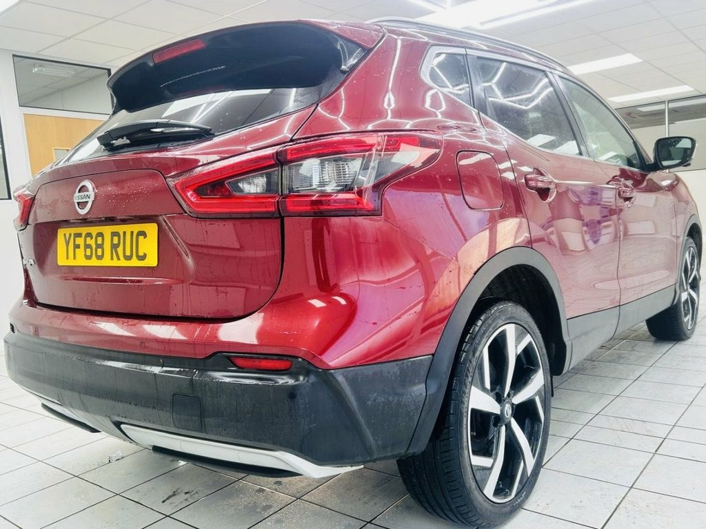 With a full service history and only one owner, this 2018 Nissan Qashqai DIG-T Tekna+ presents a superb example of this popular family SUV. This Euro 6 compliant model boasts a responsive 1.3L petrol engine and comes with an MOT valid until November 2026, ensuring peace of mind for the road ahead. A clear vehicle history check further confirms its excellent provenance, with the last service completed on 2025-11-05 at 85054 miles. Experience enhanced comfort and convenience with the Tekna+ trim, featuring a Heat Pack with heated seats and dual zone climate control for year round comfort. The Drive Assist Pack includes adaptive cruise control, while the rear view camera aids parking. Enjoy the spacious feel provided by the Glass Roof Pack, complete with a panoramic fixed sunroof. This Qashqai also stands out with its low CO2 emissions and an impressive 0-60mph acceleration time of just 8.6 seconds, demonstrating its efficient yet dynamic performance compared to other vehicles in its class. 19in Alloy Wheels, 3 Height Adjustable Rear Headrests, 60-40 Split Rear Folding Seats, AM-FM-CD Audio System with DAB, AUX Socket for MP3 Player, Advanced Drive Assist Display - 5in TFT , Ambient Lighting Centre Console, Auto Wipers, AutoHold Function - Stand Still Assist, Bluetooth with Audio Streaming, Body Coloured Handles, Boot Light, Bose 8 Speaker Premium Audio System, Carbon Graphite Dash Trim, Centre Console Storage and Armrest, Chrome Glass Surround, Chrome Interior Door Handles, Cruise Control with Speed Limiter, Dark Headlining, Daytime Running Lights Dip Function When, Drive Assist Pack, Driver Seat Height Adjustment, Driver-Passenger-Side and Curtain Airbag, Dual Zone Climate Co