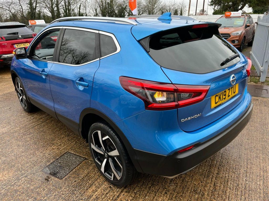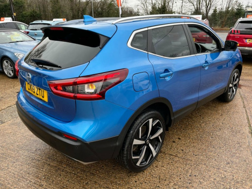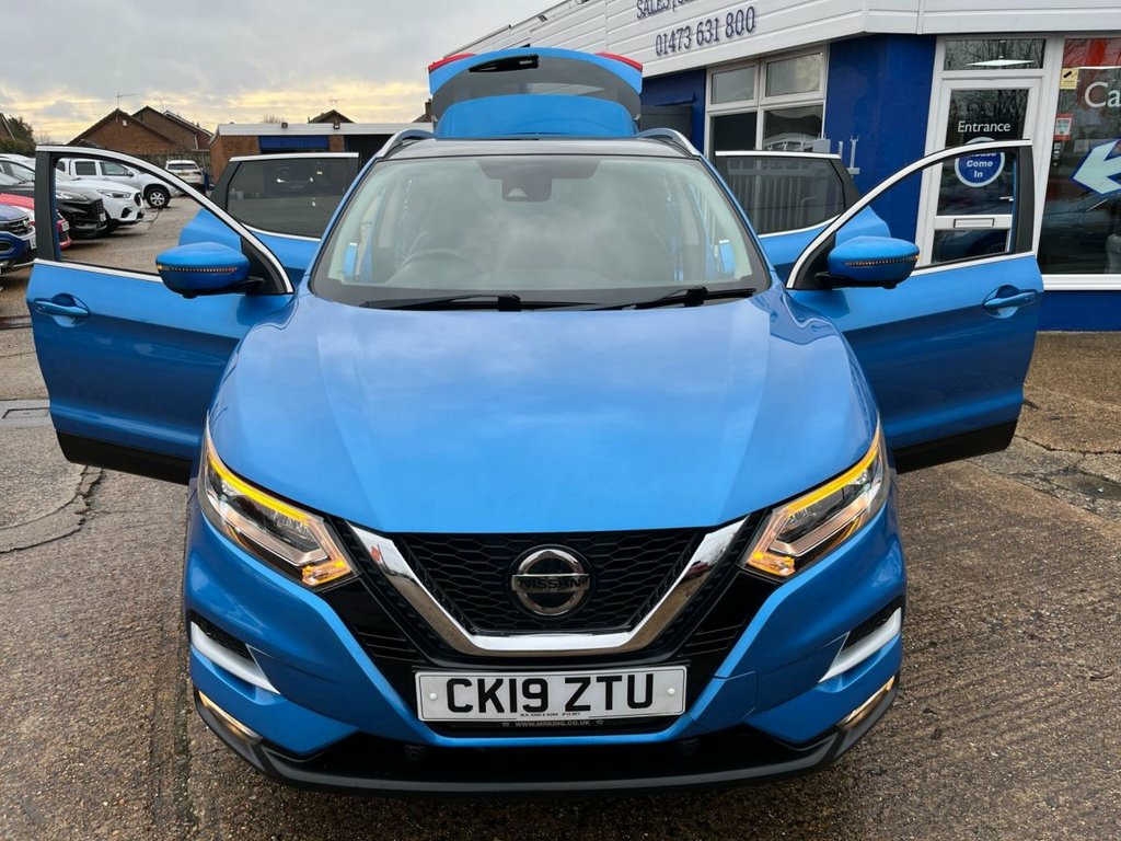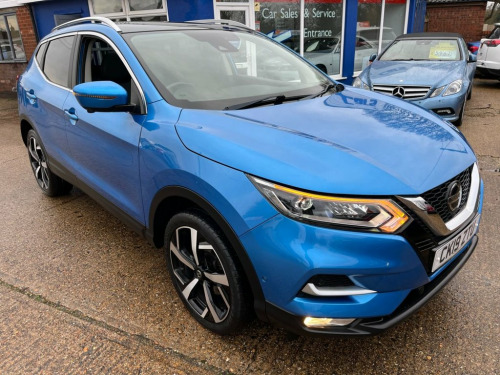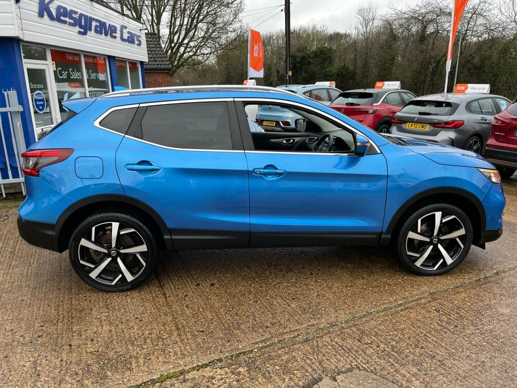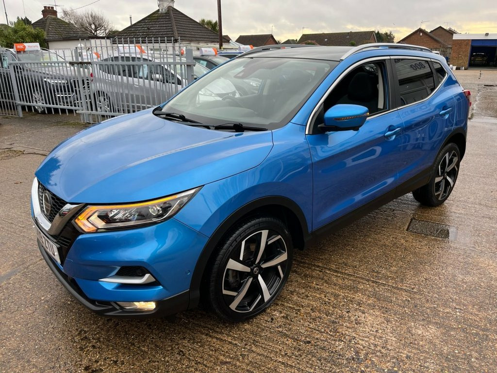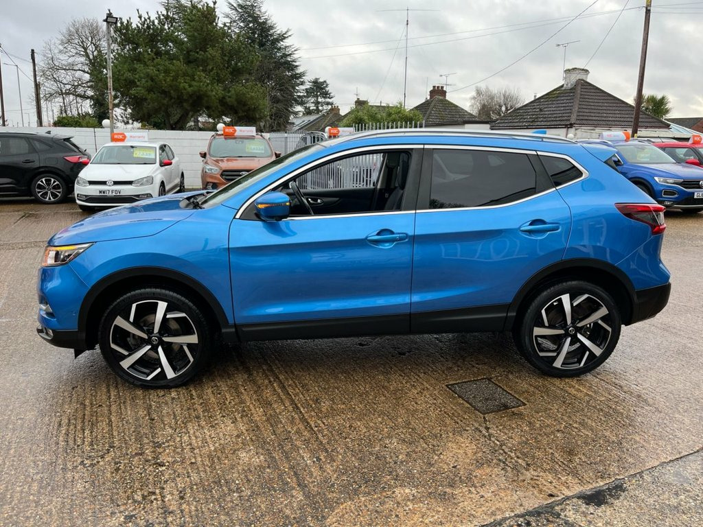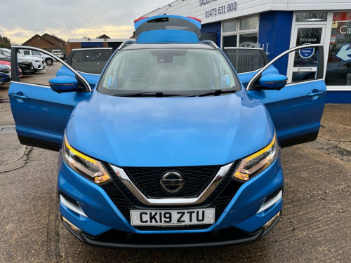 This 2019 Nissan Qashqai 1.3 DIG-T Tekna offers exceptionally low mileage for its age, having covered just 38,121 miles. This Euro 6 compliant petrol model is well suited to both town driving and longer journeys, delivering strong performance with a 0 to 60mph time of just 8.6 seconds while also maintaining low CO2 emissions. For added peace of mind, the vehicle will be supplied with a three month RAC warranty and a full 12 months MOT on purchase. The car benefits from a partial service history, with the most recent service carried out at 33,907 miles in June 2025, reflecting careful ownership and ongoing maintenance. Finished in the striking Vivid Blue metallic paintwork, it sits confidently on 19 inch alloy wheels and features a stylish part leather interior in Graphite, creating a premium feel throughout the cabin. As the range topping Tekna model, this Qashqai is exceptionally well equipped. The Intelligent Around View Monitor provides a 360 degree camera display, supported by a rear view camera and Intelligent Park Assist to make manoeuvring simple and stress free. LED headlights with Intelligent Auto Headlight functionality enhance visibility in all conditions, while the Glass Roof Pack floods the interior with natural light and adds to the sense of space. Inside, comfort and technology are key strengths. Dual zone climate control allows both front occupants to set their preferred temperature, and the electrically adjustable driver's seat with lumbar support ens Part Leather - Graphite, Vivid Blue, 19in Alloy Wheels, 3 Height Adjustable Rear Headrests, 60-40 Split Rear Folding Seats, AM-FM-CD Audio System with DAB, AUX Socket for MP3 Player, Advanced Drive Assist Display - 5in TFT , Ambient Lighting Centre Console, Auto Wipers, AutoHold Function - Stand Still Assist, Bluetooth with Audio Streaming, Body Coloured Door Mirrors, Body Coloured Handles, Boot Light, Bose 8 Speaker Premium Audio System, Carbon Graphite Dash Trim, Centre Console Storage and Armrest, Chrome Glass Surround, Chrome Interior Door Handles, Cruise Control with Speed Limiter, Daytime Running Lights Dip Function When, Drive Assist Pack, Driver Seat Height Adjustment, Driver-Passeng