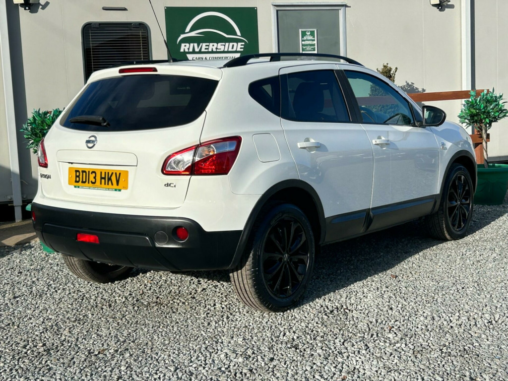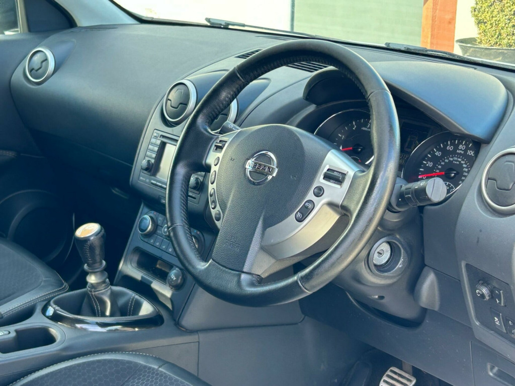 Finished In White This 2013 Nissan Qashqai dCi 360 is a well maintained example, offering a blend of practicality and advanced features. As a 360 trim model, it boasts a 1.5 litre diesel engine, known for its efficiency. This particular Qashqai comes equipped with a desirable Panoramic Glass Roof, which includes an opening sunroof for those brighter days. Parking is made simpler with the Around View Monitor, providing a 360 degree bird's eye view of your surroundings, complemented by rear parking sensors. Stay connected on the go with Bluetooth telephone integration, and enjoy the convenience of an automatic lighting system that activates the headlights when needed.The Qashqai dCi 360 stands out with its impressive fuel economy, achieving up to 58 miles per gallon, which indicates it is more economical than many similar vehicles. Furthermore, its low insurance group rating suggests that running costs will be more affordable compared to other cars in its class. The vehicle also benefits from low CO2 emissions, highlighting its environmental consideration. These factors combine to make this Nissan Qashqai a sensible and appealing choice for a wide range of drivers., v socket - front, 18in alloy wheels - onyx, 360 external badge, abs - anti lock brakes, aux-in socket, active front head restraints with height adjustment, active front headrests with height adjustment, airbag - driver, airbag - front passenger, airbags - curtain, airbags - side, alarm - ultrasonic, aluminium pedals, ambient footwell lighting, armrest - leather, armrest - rear, around view monitor - 360 bird-view, auto rain sensing wipers, automatic lighting system, bluetooth telephone integration, brake assist, bumpers - body coloured, cd radio with 6 speakers, chrome-trimmed lcd combimeter, cruise control with speed limiter, door mirrors - electric adjustment and heated, door mirrors - gloss black, drive computer, driver seat height adjustment, dual zone climate control, ebd - electronic brakeforce distribution, esp - electronic stability programme, electric folding door mirrors, electric speed-sensitive power steering, electric windows - front and rear, engine immobiliser, front armrest, front cupholders x2, front fog lights, front map reading lights, gloss black gear shift surround, gloss black interior door handle, head restraints - 3 rear, isofix child seat anchoring points, leather gear knob, leather steering wheel, nissanconnect, panoramic glass roof, parking aid - rear, pollen filter, rear cupholder, rear door child locks, rear parking sensors, rear privacy glass, rear reading lights, remote central locking, roof rails - gloss black, seats - 60-40 split foldable rear bench, seats - drivers lumbar support, speed-sensitive autolock function, steering wheel mounted audio controls, tilt and telescopic adjustable steering wheel, traction control, trip computer, usb - ipod connectivity