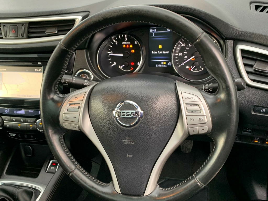 Nissan Qashqai 1.5 dCi Acenta+ 2WD Euro 5 (s/s) 5dr+With a full service history and low mileage for its age, this 2015 Nissan Qashqai dCi Acenta+ is a well-maintained example of a popular and practical vehicle. The Acenta+ trim adds a touch of luxury and convenience to the driving experience. The 1.5L diesel engine offers a good balance of performance and economy. The car comes with a warranty of 3 months for added peace of mind. The MOT is valid until May 2026. Enjoy modern conveniences such as Bluetooth telephone integration, front parking sensors, a panoramic glass roof, and a rear-view camera, making parking and maneuvering a breeze. Automatic headlights add to the ease of driving.This Qashqai stands out with its impressive fuel economy of 74 mpg, meaning fewer trips to the petrol station and more money in your pocket. It also falls into a low insurance group, potentially saving you money on your annual premiums. Furthermore, its low CO2 emissions mean you'll be contributing less to pollution.3 MONTHS FREE WARRANTY INCLUDED FINANCE AVAILABLE PART EXCHANGE WELCOME NATIONWIDE DELIVERY AVAILABLE. 17in Alloy Wheels - 5-Spoke in Silver, 6 Speakers, 60-40 Split Rear Folding Seats, ABS - Anti Lock Brakes, AUX-In Socket, Airbag - Driver, Airbag - Passenger, Airbags - Curtain, Airbags - Side, Alarm, Armrest - Rear, Auto Dimming Rear View Mirror, Auto Rain Sensing Wipers, Black Honeycomb Front Grille, Body Coloured Handles, Brake Assist, Bumpers - Body Coloured, Chrome Glass Surround, Climate Control - Dual Zone, Cruise Control with Speed Limiter, DAB Radio, Display Screen - Colour TFT 5in, Door Mirrors - Body Coloured, Door Mirrors - Power Fold and Heated, Driver Seat Height Adjustment, EBD - Electronic Brakeforce Distribution, ESP - Electronic Stability Programme, Electric Speed-Sensitive Power Steering, Front Armrest, Front Collision Avoidance, Front Fog Lights, Front and Rear Electric Windows, Head Restraints - Active Front, Head Restraints - Rear, Headlights - Auto, Headlights - Auto High-Low Beam, Hill Start Assist, I-Key - Keyless Entry, ISOFIX Childseat Anchorage Points - Middle Row Outer Seats, Immobiliser, Interior Ambient Lighting, LED Daytime Running Lights, Lane Departure Warning, Leather Gear Knob, Leather Steering Wheel, Luggage Board System, Lumbar Support, NissanConnect, Panoramic Glass Roof, Parking Sensor - Front, Pollen Filter, Privacy Glass, Puncture Repair Kit, Radio-CD, Rear Cupholder, Rear Door Child Locks, Rear Parking Sensor, Rear View Camera, Remote Central Locking, Satellite Navigation System, Smart Vision Pack, Speed-Sensitive Autolock Function, Steering Wheel Mounted Audio Controls, TPMS - Tyre Pressure Monitoring System, Telephone - Bluetooth Integration, Tilt and Telescopic Adjustable Steering Wheel, Traction Control, Traffic Sign Recognition, Trip Computer, USB Port, e-PKB - Electric Parking Brake, Cloth - Graphite. Full service history