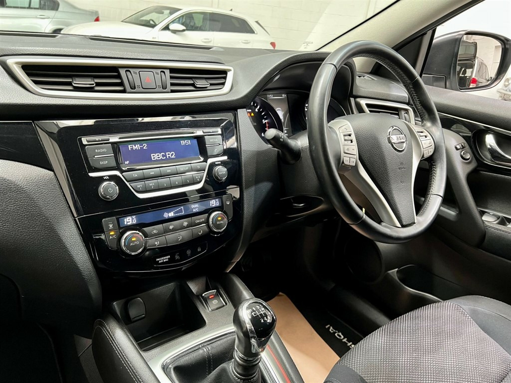 Only £20 Road Tax. This 2014 Nissan Qashqai dCi Acenta presents an exceptional opportunity with its remarkably condition and low mileage of just 57,000 miles, and having been owned by only one previous keepers. This Acenta trim model is equipped with a 1.5 litre diesel engine, offering a compelling blend of efficiency and performance. Inside, you'll find comfort and convenience features such as dual zone climate control to keep everyone comfortable, automatic headlights that adjust to changing light conditions, and Bluetooth integration for seamless handsfree calls and music streaming. The Qashqai stands out with its impressive fuel economy, achieving an outstanding 74 miles per gallon, which is significantly better than many other vehicles in its class. Furthermore, its low CO2 emissions and low insurance group rating contribute to making this a very economical choice for everyday driving. These highlights demonstrate how this particular Nissan Qashqai offers a more cost effective and environmentally conscious ownership experience compared to similar models. Climate Control - Dual Zone,Cruise Control with Speed Limiter,17in Alloy Wheels - 5-Spoke in Silver,Telephone - Bluetooth Integration,Headlights - Auto,Auto Rain Sensing Wipers,Steering Wheel Mounted Audio Controls,Interior Ambient Lighting,Radio-CD,LED Daytime Running Lights,Electric Speed-Sensitive Power Steering,Leather Steering Wheel,Leather Gear Knob,Front and Rear Electric Windows,Door Mirrors - Power Fold and Heated,Display Screen - Colour TFT 5in,6 Speakers,AUX-In Socket,Black Honeycomb Front Grille,ABS - Anti Lock Brakes,Brake Assist,EBD - Electronic Brakeforce Distribution,ESP - Electronic Stability Programme,Alarm,60-40 Split Rear Folding Seats,Armrest - Rear,Body Coloured Handles,Bumpers - Body Coloured,Chrome Glass Surround,Door Mirrors - Body Coloured,Driver Seat Height Adjustment,Front Armrest,Front Fog Lights,Head Restraints - Active Front,Head Restraints - Rear,Hill Start Assist,ISOFIX Childseat Anchorage Points - Middle Row Outer Seats,Immobiliser,Remote Central Locking,Luggage Board System,Lumbar Support,Rear Cupholder,Trip Computer,Service Indicator,Speed-Sensitive Autolock Function,USB Port,Traction Control,e-PKB - Electric Parking Brake,Rear Door Child Locks,Tilt and Telescopic Adjustable Steering Wheel,Pollen Filter,Airbags - Curtain,Airbag - Driver,Airbag - Passenger,Airbags - Side,TPMS - Tyre Pressure Monitoring System,Puncture Repair Kit
