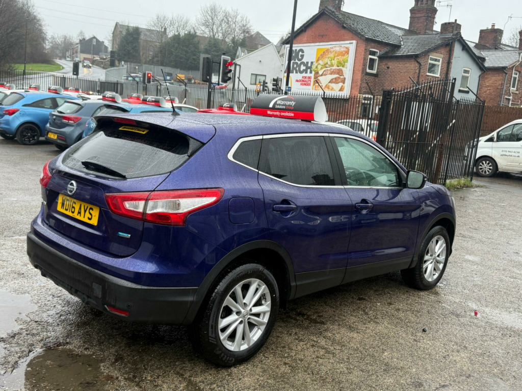 This 2016 Nissan Qashqai dCi Acenta boasts a full service history, with its last service completed at 86,811 miles, offering you peace of mind. This Euro 6 compliant model features a 1.5 litre diesel engine and comes with a 3 month warranty for added security. The Acenta trim includes automatic headlights, dual zone climate control for personalised comfort, and Bluetooth integration for seamless phone connectivity. A 12 month MOT will be provided upon purchase, ensuring its roadworthiness.You will find this Nissan Qashqai to be an economical choice, with an impressive fuel economy of 74 mpg, which is better than many similar vehicles. Its low CO2 emissions also contribute to its efficiency, and it sits in a low insurance group, making it a cost effective option for everyday driving.. 17in Alloy Wheels - 5-Spoke in Silver, 6 Speakers, 60-40 Split Rear Folding Seats, ABS - Anti Lock Brakes, AUX-In Socket, Airbag - Driver, Airbag - Passenger, Airbags - Curtain, Airbags - Side, Alarm, Armrest - Rear, Auto Rain Sensing Wipers, Black Honeycomb Front Grille, Body Coloured Handles, Brake Assist, Bumpers - Body Coloured, Chrome Glass Surround, Climate Control - Dual Zone, Cruise Control with Speed Limiter, Display Screen - Colour TFT 5in, Door Mirrors - Body Coloured, Door Mirrors - Power Fold and Heated, Driver Seat Height Adjustment, EBD - Electronic Brakeforce Distribution, ESP - Electronic Stability Programme, Electric Speed-Sensitive Power Steering, Front Armrest, Front Fog Lights, Front and Rear Electric Windows, Head Restraints - Active Front, Head Restraints - Rear, Headlights - Auto, Hill Start Assist, ISOFIX Childseat Anchorage Points - Middle Row Outer Seats, Immobiliser, Interior Ambient Lighting, LED Daytime Running Lights, Leather Gear Knob, Leather Steering Wheel, Luggage Board System, Lumbar Support, Pollen Filter, Puncture Repair Kit, Radio-CD, Rear Cupholder, Rear Door Child Locks, Remote Central Locking, Seats - Passengers Height Adjustment, Speed-Sensitive Autolock Function, Steering Wheel Mounted Audio Controls, TPMS - Tyre Pressure Monitoring System, Telephone - Bluetooth Integration, Tilt and Telescopic Adjustable Steering Wheel, Traction Control, Trip Computer, USB Port, e-PKB - Electric Parking Brake. Full service history