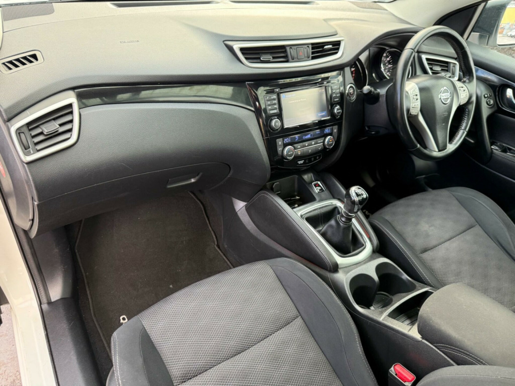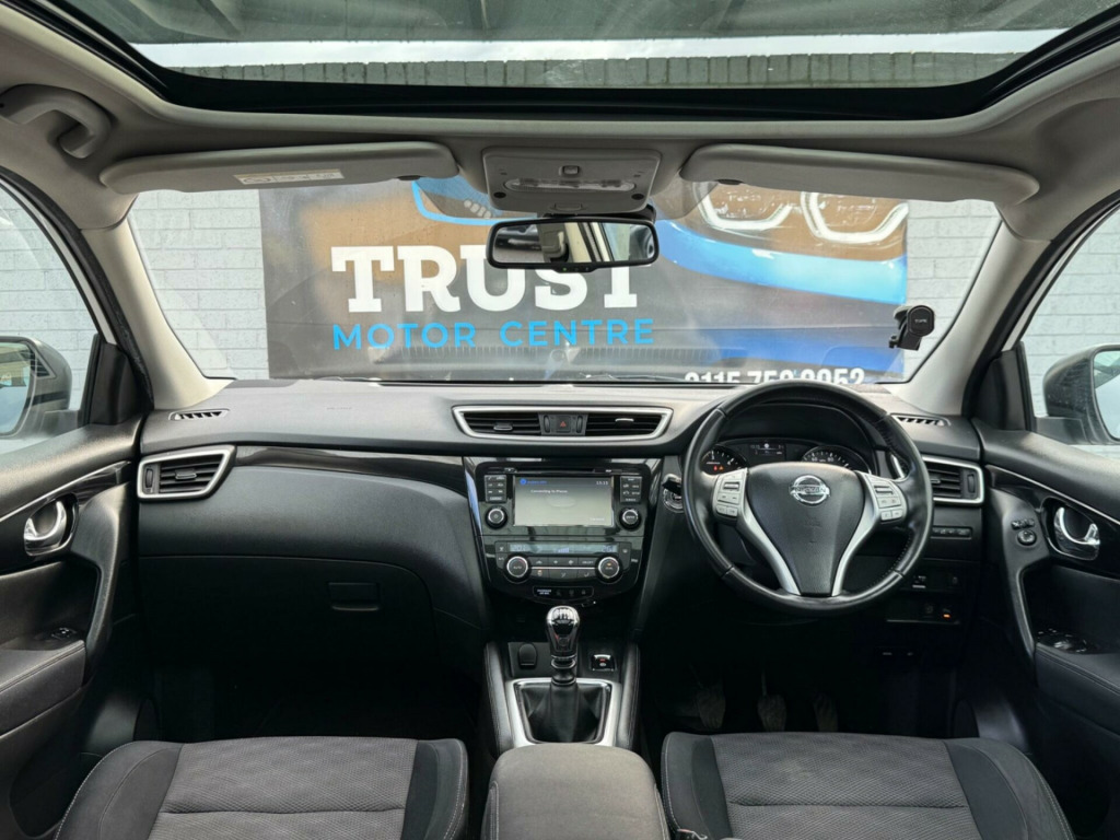 . 17in Alloy Wheels - 5-Spoke in Silver, 6 Speakers, 60-40 Split Rear Folding Seats, ABS - Anti Lock Brakes, AUX-In Socket, Airbag - Driver, Airbag - Passenger, Airbags - Curtain, Airbags - Side, Alarm, Armrest - Rear, Auto Dimming Rear View Mirror, Auto Rain Sensing Wipers, Black Honeycomb Front Grille, Body Coloured Handles, Brake Assist, Bumpers - Body Coloured, Chrome Glass Surround, Climate Control - Dual Zone, Cruise Control with Speed Limiter, DAB Radio, Door Mirrors - Body Coloured, Door Mirrors - Power Fold and Heated, Driver Seat Height Adjustment, EBD - Electronic Brakeforce Distribution, ESP - Electronic Stability Programme, Electric Speed-Sensitive Power Steering, Front Armrest, Front Collision Avoidance, Front Fog Lights, Front and Rear Electric Windows, Head Restraints - Active Front, Head Restraints - Rear, Headlights - Auto, Headlights - Auto High-Low Beam, Hill Start Assist, ISOFIX Childseat Anchorage Points - Middle Row Outer Seats, Immobiliser, Intelligent Key, Interior Ambient Lighting, LED Daytime Running Lights, Lane Departure Warning, Leather Gear Knob, Leather Steering Wheel, Luggage Board System, Lumbar Support, Panoramic Glass Roof, Parking Sensor - Front, Pollen Filter, Puncture Repair Kit, Push Start-Stop Button, Radio-CD, Rear Cupholder, Rear Door Child Locks, Rear Parking Sensor, Rear Privacy Glass, Rear View Camera, Satellite Navigation - Nissan Connect, Service Indicator, Smart Vision Pack, Speed-Sensitive Autolock Function, Steering Wheel Mounted Audio Controls, TPMS - Tyre Pressure Monitoring System, Telephone - Bluetooth Integration, Tilt and Telescopic Adjustable Steering Wheel, Touch Screen 7in, Traction Control, Traffic Sign Recognition, Trip Computer, USB Port, e-PKB - Electric Parking Brake.