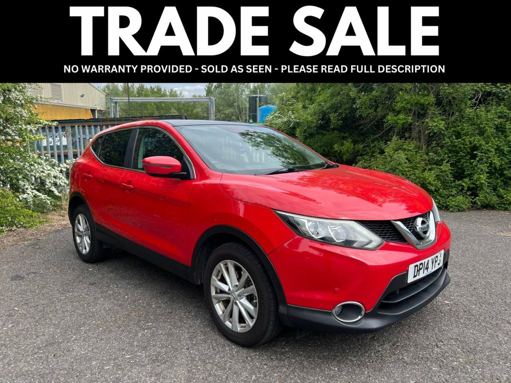 TRADE SALE / TRADE SALE / TRADE SALE > 2014, 1.5L Diesel, Nissan Qashqai, Acenta Premium, Manual, 5 Dr! This particular example is supplied with 1 key & great service history (SEE PHOTOS!) The vehicle is currently on 116,262 Miles. images of all 4 wheels & tyres attached - any outstanding damage which require attention shown. PLEASE REMEMBER THAT THIS IS A TRADE SALE - SOLD AS SEEN - NO WARRANTY IMPLIED OR GIVEN. CONTACT US FOR MORE INFORMATION ON 01226 494040!