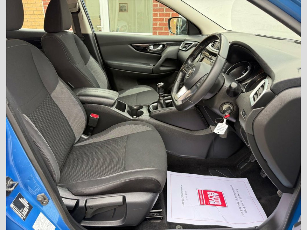 Fantastic Looking Nissan Qashqai Acenta Premium finished in the popular Vivid Blue, Great spec: Rear Parking Camera, Front & Rear Parking sensors, Sat Nav, Bluetooth and DAB radio, Cruise Control, Climate Control, Power Fold Mirrors, Alloy Wheels, Service History, 2 Keys. Vivid Blue, 17in Alloy Wheels, 3 Height Adjustable Rear Headrests, 6 Speakers, 60-40 Split Rear Folding Seats, AM-FM-CD Audio System with DAB, AUX Socket for MP3 Player, Advanced Drive Assist Display - 5in TFT , Ambient Lighting Centre Console, Auto Wipers, AutoHold Function - Stand Still Assist, Bluetooth with Audio Streaming, Body Coloured Door Mirrors, Body Coloured Handles, Boot Light, Centre Console Storage and Armrest, Chrome Glass Surround, Chrome Interior Door Handles, Cruise Control with Speed Limiter, Daytime Running Lights Dip Function When, Driver Seat Height Adjustment, Driver-Passenger-Side and Curtain Airbag, Drivers Seat with Manual Lumbar Support, Dual Zone Climate Control A