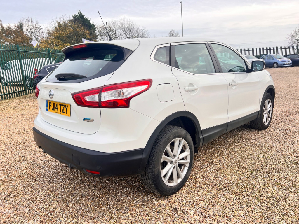 This 2014 Nissan Qashqai 1.5 dCi Acenta SUV has covered 141,811 miles and is powered by a reliable diesel engine, making it an ideal choice for those who require a fuel-efficient and powerful vehicle. This SUV is guaranteed to be roadworthy for years to come. The spacious interior boasts 5 seats and 5 doors, providing ample space for passengers and cargo. The sleek exterior is complemented by 17in Alloy Wheels, a Black Honeycomb Front Grille, Body Coloured Handles, Bumpers, and Chrome Glass Surrounds, showcasing the vehicle's stylish design. Additionally, with features such as a manual transmission and 2WD Euro 5 (s/s) (110 ps), this car is a perfect blend of performance and practicality.-Full Service History-2 Keys- Part Exchange Welcome- Extended Warranties Available- Finance Available in alloy wheels - 5-spoke in silver, black honeycomb front grille, body coloured handles, bumpers - body coloured, chrome glass surround, door mirrors - body coloured, door mirrors - power fold and heated, front and rear electric windows, puncture repair kit, 6 speakers, aux-in socket, display screen - colour tft 5in, radio-cd, telephone - bluetooth integration, usb port, 60-40 split rear folding seats, armrest - rear, auto rain sensing wipers, climate control - dual zone, driver seat height adjustment, front armrest, head restraints - active front, head restraints - rear, interior ambient lighting, leather gear knob, leather steering wheel, luggage board system, lumbar support, pollen filter, rear cupholder, service indicator, steering wheel mounted audio controls, tilt and telescopic adjustable steering wheel, abs - anti lock brakes, airbag - driver, airbag - passenger, airbags - curtain, airbags - side, alarm, brake assist, ebd - electronic brakeforce distribution, esp - electronic stability programme, hill start assist, isofix childseat anchorage points - middle row outer seats, immobiliser, rear door child locks, remote central locking, speed-sensitive autolock function, traction control, e-pkb - electric parking brake, cruise control with speed limiter, electric speed-sensitive power steering, tpms - tyre pressure monitoring system, trip computer, front fog lights, headlights - auto, led daytime running lights