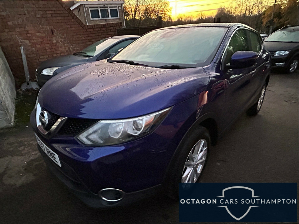 This 2017 Nissan Qashqai 1.5 dCi Acenta SUV has had only 2 owners from new and has a full service .. With a new Mot on purchase and 6 months extendable parts and labour warranty for peace of mind .This 5-seater, 5-door SUV is ULEZ compliant, making it perfect for city driving. The vehicle comes with 17in alloy wheels, a black honeycomb front grille, body-coloured bumpers, handles and mirrors, and chrome glass surround. Inside, you'll find electrically adjustable and heated door mirrors for added convenience. With its Euro 6 (s/s) engine producing 110 ps, this manual 2WD Nissan Qashqai is ready to hit the road.Please take a look at our excellent Google reviews Octagon Cars Southampton in alloy wheels, black honeycomb front grille, body-coloured bumpers - handles and mirrors, chrome glass surround, electrically adjustable and heated door mirrors, front and rear electric windows, puncture repair kit, 3 x 3-point rear seatbelts with elr, alarm, driver-passenger-side and curtain airbags, drivers side one-touch and anti-trap window, esp abs ebd and brake assist, front seat belt height adjustment, front seat belts with load limiter and pretensioners, hill start assist, isofix child seat anchoring points, immobiliser, rear door child locks, remote central locking with superlocking, e-pkb - electric parking brake, 5in high definition full colour tft screen combimeter, 6 speakers, aux socket for mp3 player, bluetooth, cd radio, usb port, 60-40 split rear folding seats, driver seat height adjustment, dual zone climate control air conditioning, front centre console and armrest, head restraints - 3 rear, height adjustable front head restraints, interior ambient lighting, leather gear knob, leather steering wheel, luggage board system, rear seat armrest with 2 cupholders, remote audio control, seats - drivers lumbar support, seats - passengers height adjustment, tilt and telescopic adjustable steering wheel, automatic lights and wipers, front fog lamps with chrome ring, led signature daytime running lights, cruise control with speed limiter, drive computer, electric speed-sensitive power steering, nissan chassis controls, selectable steering - normal or sport, tpms - tyre pressure monitoring system