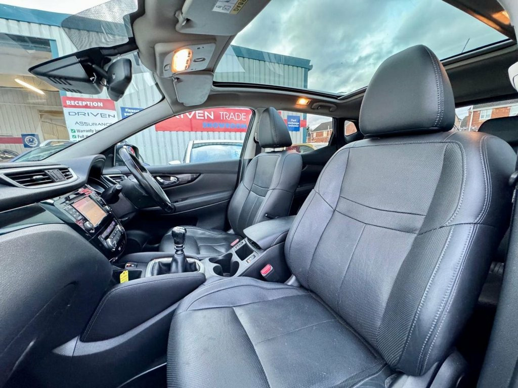 Nissan QASHQAI Black Edition, £20 Road Tax, Euro 6, 110bhp 2wd Diesel, 6 Speed Manual Gearbox, Registered 31-10-2016, Combined MPG Of 70.6, 92456 Miles With Service History Including 8 Services, Panoramic Roof, Full Black Leather, Heated Front Seats, Colour Sat Nav, Media Screen, 360 Camera, Cruise Control, Climate Control, Multifunction Steering Wheel, Lane Assist, Bluetooth, Aux/Usb Connection, DAB Radio, Powerfold Mirrors, Roof Rails, Parking Sensors, Spare Wheel, Gloss Black Alloy Wheels, Auto LightsWipers. Also Comes With Full Mot Fresh Service, Six Months Warranty Including Breakdown Cover. Driven Trade Cars, Leeholme Road, Behind Tesco, Billingham, TS233TA 01642 370823 £7250 19in Alloy Wheels - Black, 3 x 3-Point Rear Seatbelts with ELR, 5in High Definition Full Colour TFT Scre, 6 Speakers, 60-40 Split Rear Folding Seats, Alarm, Automatic Folding Door Mirrors, Automatic Lights and Wipers, AUX Socket for MP3 Player, Black Honeycomb Front Grille, Bluetooth, Body-coloured Bumpers - Handles and Mirr, CD Radio, Chrome Glass Surround, Cross Over Pack, Cruise Control with Speed Limiter, Drive Computer, Driver Seat Height Adjustment, Driver-Passenger-Side and Curtain Airbag, Drivers Side One-touch and Anti-trap Win, Dual Zone Climate Control Air Conditioni, e-PKB - Electric Parking Brake, Electric Speed-Sensitive Power Steering, ESP ABS EBD and Brake Assist, Executive P