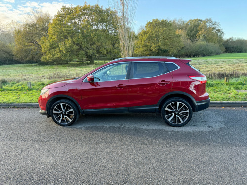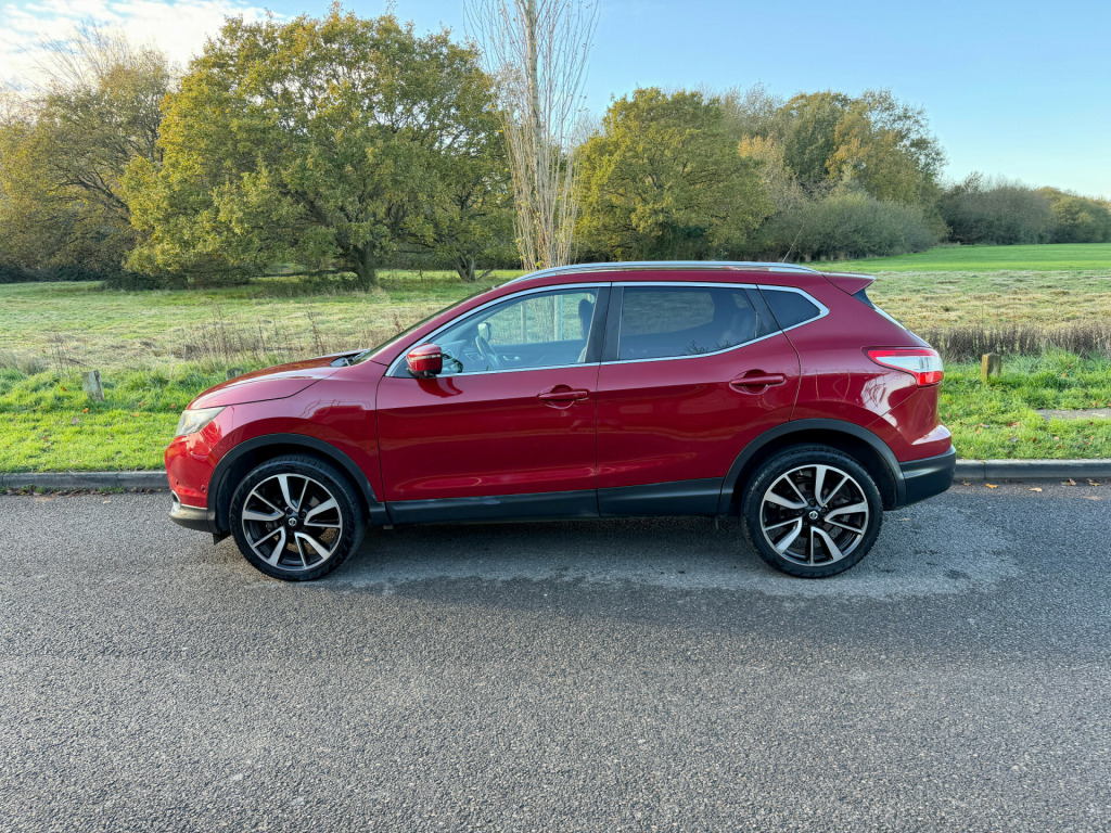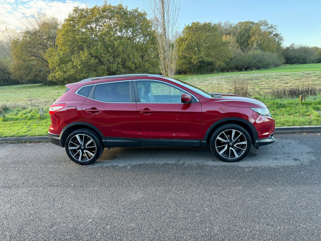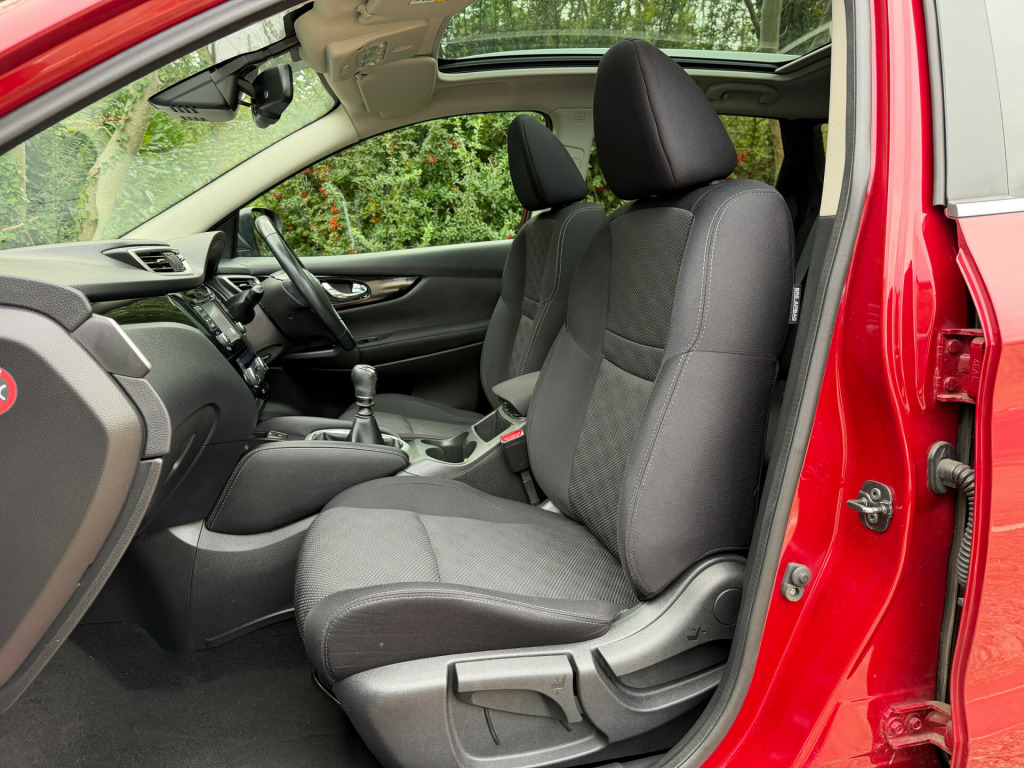 **REDUCED** was 7995 - ULEZ COMPLIANT - 17 Reg - New Red with Charcoal Cloth Trim, This lovely Qashqai comes with a very high specification which includes: Fuzz Size panoramic Glass Sunroof, Factory Colour Satellite Navigation, 360' Reversing Camera, DAB Radio, Bluetooth Audio, Bluetooth Phone, Dual Climate Control, Cruise Control, Trip Computer, CD Player with Fingertip Controls, Power Folding Mirrors, Auto Lights, Auto Dipping Mirror, Leather Steering Wheel, Airbags, ISO-Fix Seating, 18'' Alloy Wheels, Front Fogs, comes with a Full Nissan Main Dealer Service History (8 services) and a nice long MOT until the 30th July 2026 with no advisories, really a very nice looking car in this gorgeous colour and is complemented perfectly by its super high specification and lovely service records, this car boasts up to 78 MPG and is ULEZ COMPLIANT, drives superbly so any inspection welcome, HPI Clear, Part Exchange up or down welcome. **Debit/Credit Cards Accepted** **Open 6 Days a week** **POOR CREDIT NO PROBLEMS - Finance available (subject to status)** (*Sometimes we may still reserve the right to not offer unaccompanied test drives)