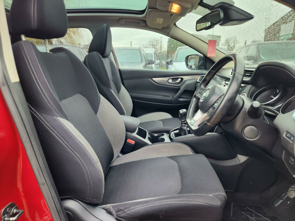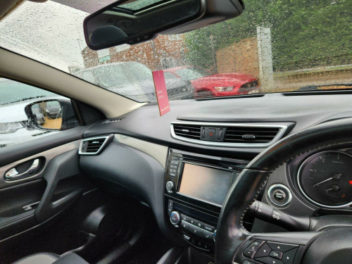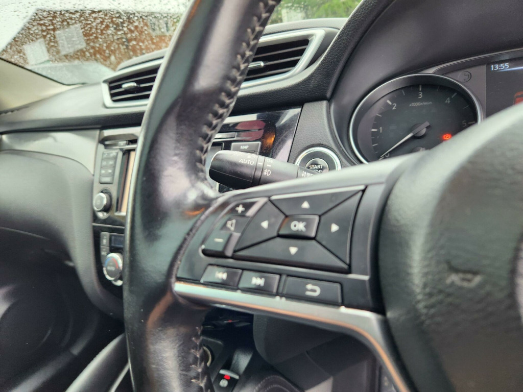 This 2017 Nissan Qashqai dCi N Connecta offers an exceptional blend of efficiency and technology. As a Euro 6 compliant model, it features a 1.5 litre diesel engine that delivers an impressive 74 miles per gallon, making it a very economical choice for your driving needs. The N Connecta trim level comes equipped with the Smart Vision Pack, which includes front and rear parking sensors, alongside intelligent automatic headlights for enhanced visibility and convenience. Further adding to its appeal is the Tech Pack, incorporating a rear parking camera, and dual zone climate control air conditioning to ensure comfort for all occupants.This Qashqai stands out with its low insurance group rating and low CO2 emissions, indicating that it is more cost effective to own and run compared to many other vehicles in its class. These highlights, combined with the comprehensive suite of parking assistance features and climate control, make this 2017 Nissan Qashqai dCi N Connecta a practical and well equipped option for everyday driving. in alloy wheels - bi-colour, 3 height adjustable rear headrests, 6 speakers, 60-40 split rear folding seats, am-fm radio and cd player, aux socket, advanced drive assist display - 5in tft coloured screen, ambient lighting centre console, anti dazzle rear view mirror, auto wipers, autohold function - stand still assist, bluetooth, body coloured door mirrors, body coloured handles, boot light, carbon graphite dash trim, chrome glass surround, chrome interior door handles, cruise control with speed limiter, dab digital radio, daytime running lights dip function when turn signal applied, driver seat height adjustment, driver-passenger-side and curtain airbags, drivers seat with manual lumbar support, dual zone climate control air conditioning, esp abs ebd and brake assist, electric auto-folding door mirrors, electric parking brake, electric speed-sensitive power steering, front 12v power sockets x2, front centre console and armrest, front seat belts with load limiter and pretensioners, front and rear door pockets with drink holders, front and rear electric windows, front and rear seatbelt warning, halogen headlamps, headlights - high beam assist, height adjustable front head restraints, height adjustable front seatbelts, hill start assist, isofix child seat anchoring points - rear x2, intelligent around view monitor, intelligent auto headlight, intelligent emergency braking, intelligent key, interior ambient lighting, led signature daytime running lights, led turn indicator on door mirrors, lane departure warning, leather d shaped steering wheel, leather gear lever, leather knee pad, luggage board system, matt silver roof rails, monoform front seats with plastic backboard, nissan anti theft system immobiliser, nissan chassis controls, nissanconnect evo touchscreen navigation and entertainment system, one touch 4 x auto windows with illuminated switches, outside temperature sensor, parcel shelf - stow function under luggage board, parking sensor - front, passenger airbag deactivation system, passengers seat with manual lumbar support, pollen filter, privacy glass, puncture repair kit, rear parking sensors, rear roof spoiler, rear view camera, rear wiper with reverse link, remote central locking, seats - passengers height adjustment, selectable steering - normal or sport, shark fin antenna, smart vision pack, smartphone app integration, start push button, steering wheel mounted audio controls, synthetic leather wrapped door handle with contrasting stitching, tpms - tyre pressure monitoring system, tech pack, thatcham category 1 alarm, tilt and telescopic adjustable steering wheel, traffic sign recognition, trip computer, usb port, underbody vortex generators