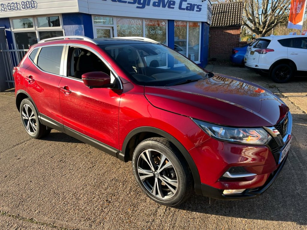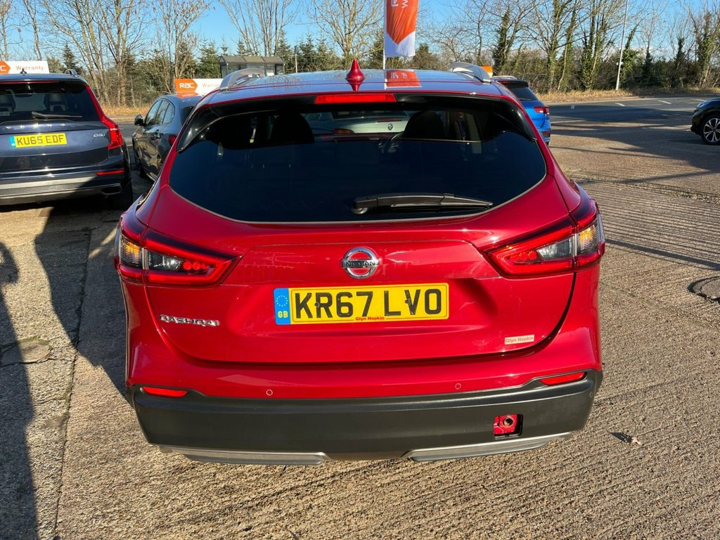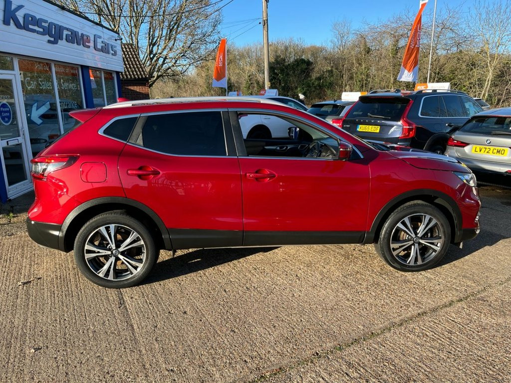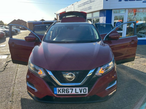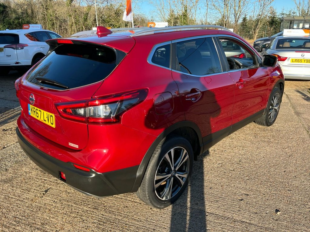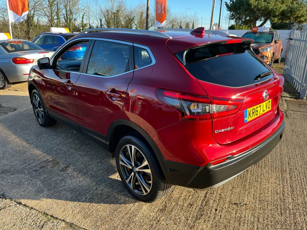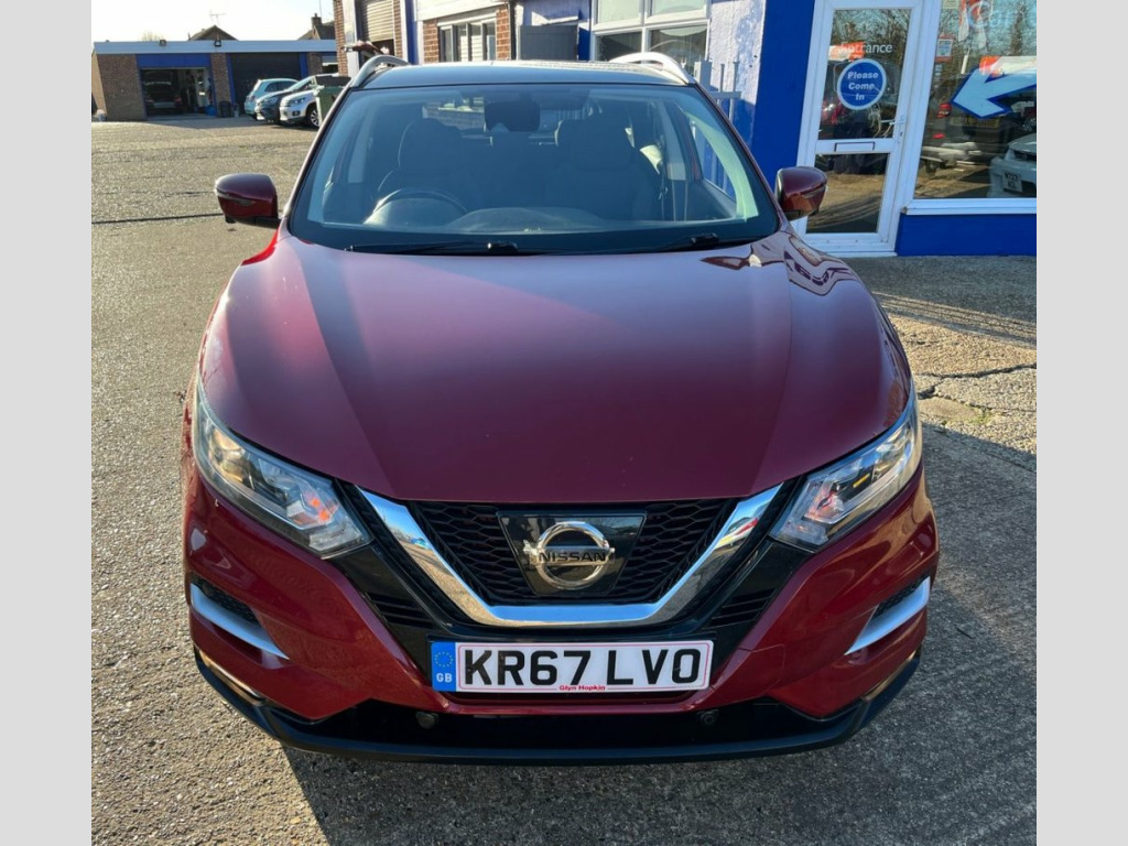 This 2017 Nissan Qashqai dCi N Connecta is a well specified and economical family SUV, benefiting from a recent service completed on 01 July 2025 at 75,220 miles, offering reassurance for its next owner. Powered by a Euro 6 compliant 1.5 litre diesel engine, it delivers excellent fuel efficiency while keeping running costs low. The car will be supplied with a three month warranty and a fresh 12 month MOT on purchase, providing additional peace of mind. Finished in striking Magnetic Red metallic paint, this N Connecta model is equipped with the desirable Glass Roof Pack, featuring a fixed panoramic sunroof that floods the cabin with natural light. The exterior is complemented by 18 inch bi colour alloy wheels, privacy glass, matt silver roof rails and LED signature daytime running lights, giving the car a modern and confident presence on the road. Inside, the cabin is thoughtfully designed and well equipped. Dual zone climate control air conditioning ensures comfort for both driver and passengers, while the NissanConnect Evo touchscreen navigation and entertainment system provides satellite navigation, DAB digital radio, Bluetooth connectivity and smartphone app integration. The leather D shaped steering wheel with mounted audio controls, ambient interior lighting and advanced driver information display further enhance the driving experience. Manoeuvring and parking are made effortless thanks to the Intelligent Around View Monitor, offering a full 360 degree camera view, su Cloth - Anthracite Bi-Colour, Glass Roof Pack, Magnetic Red, 18in Alloy Wheels - Bi-Colour, 3 Height Adjustable Rear Headrests, 6 Speakers, 60-40 Split Rear Folding Seats, AM-FM Radio and CD Player, AUX Socket, Advanced Drive Assist Display - 5in TFT , Ambient Lighting Centre Console, Anti Dazzle Rear View Mirror, Auto Wipers, AutoHold Function - Stand Still Assist, Bluetooth, Body Coloured Door Mirrors, Body Coloured Handles, Boot Light, Carbon Graphite Dash Trim, Chrome Glass Surround, Chrome Interior Door Handles, Cruise Control with Speed Limiter, DAB Digital Radio, Daytime Running Lights Dip Function When, Driver Seat Height Adjustment, Driver-Passenger-Side and Curtain Airbag, Drivers