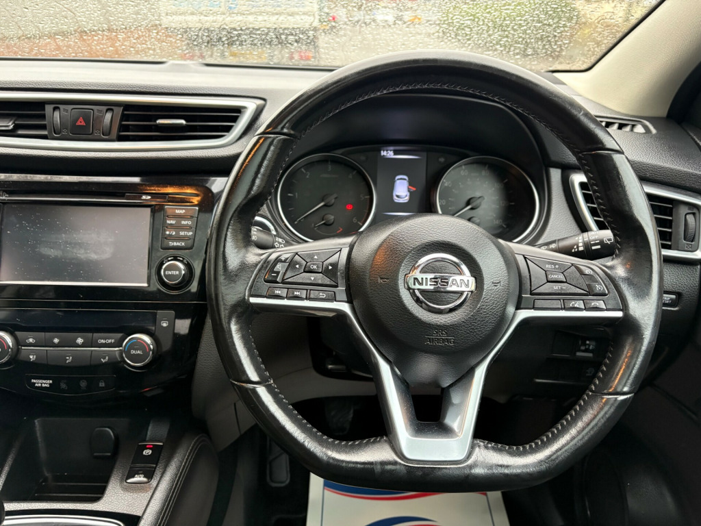 CALL, EMAIL OR WHATSAPP TO ARRANGE A VIEWING OR DISCUSS FINANCE OPTIONSIncluded when buying from Forsyth Street Cars:Minimum 10 Months MOTAn up-to date Oil Service1 Month extendable warranty with up-to 3 years cover5 Star Customer ServiceBreakdown cover options Driveaway Insurance available HPI CLEAR in alloy wheels - bi-colour, body coloured door mirrors, body coloured handles, chrome glass surround, electric auto-folding door mirrors, front and rear electric windows, led turn indicator on door mirrors, matt silver roof rails, privacy glass, puncture repair kit, rear roof spoiler, 3 height adjustable rear headrests, 60-40 split rear folding seats, ambient lighting centre console, anti dazzle rear view mirror, auto wipers, boot light, carbon graphite dash trim, chrome interior door handles, daytime running lights dip function when turn signal applied, driver seat height adjustment, drivers seat with manual lumbar support, dual zone climate control air conditioning, front centre console and armrest, front and rear door pockets with drink holders, height adjustable front head restraints, interior ambient lighting, leather d shaped steering wheel, leather gear lever, leather knee pad, luggage board system, monoform front seats with plastic backboard, one touch 4 x auto windows with illuminated switches, parcel shelf - stow function under luggage board, passengers seat with manual lumbar support, pollen filter, seats - passengers height adjustment, start push button, steering wheel mounted audio controls, synthetic leather wrapped door handle with contrasting stitching, tech pack, tilt and telescopic adjustable steering wheel, 6 speakers, am-fm radio and cd player, aux socket, advanced drive assist display - 5in tft coloured screen, bluetooth, dab digital radio, front 12v power sockets x2, nissanconnect evo touchscreen navigation and entertainment system, shark fin antenna, smartphone app integration, usb port, autohold function - stand still assist, driver-passenger-side and curtain airbags, esp abs ebd and brake assist, electric parking brake, front seat belts with load limiter and pretensioners, front and rear seatbelt warning, height adjustable front seatbelts, hill start assist, isofix child seat anchoring points - rear x2, intelligent emergency braking, intelligent key, nissan anti theft system immobiliser, passenger airbag deactivation system, rear wiper with reverse link, remote central locking, smart vision pack, thatcham category 1 alarm, cruise control with speed limiter, electric speed-sensitive power steering, intelligent around view monitor, lane departure warning, nissan chassis controls, outside temperature sensor, parking sensor - front, rear parking sensors, rear view camera, selectable steering - normal or sport, tpms - tyre pressure monitoring system, traffic sign recognition, trip computer, underbody vortex generators, halogen headlamps, headlights - high beam assist, intelligent auto headlight, led signature daytime running lights