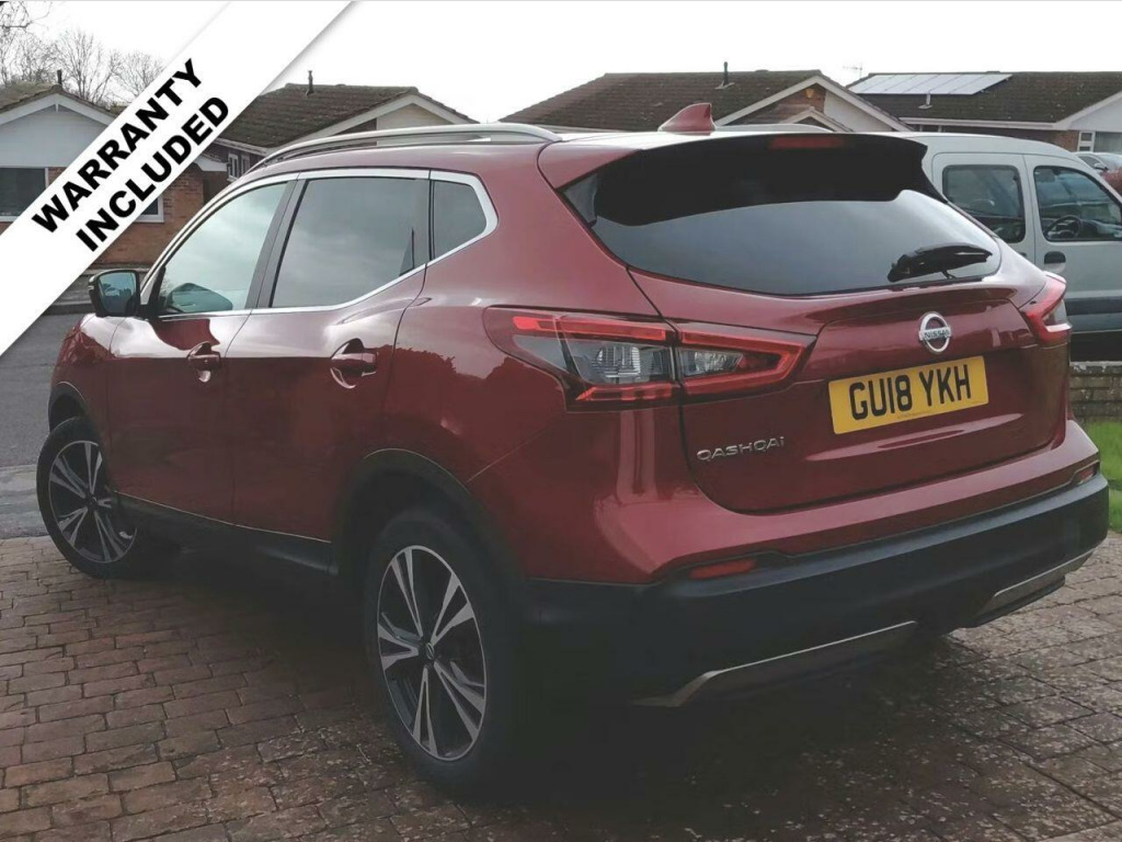 . 18in Alloy Wheels - Bi-Colour, 3 Height Adjustable Rear Headrests, 6 Speakers, 60-40 Split Rear Folding Seats, AM-FM Radio and CD Player, AUX Socket, Advanced Drive Assist Display - 5in TFT Coloured Screen, Ambient Lighting Centre Console, Anti Dazzle Rear View Mirror, Auto Wipers, AutoHold Function - Stand Still Assist, Bluetooth, Body Coloured Door Mirrors, Body Coloured Handles, Boot Light, Carbon Graphite Dash Trim, Chrome Glass Surround, Chrome Interior Door Handles, Cruise Control with Speed Limiter, DAB Digital Radio, Daytime Running Lights Dip Function When Turn Signal Applied, Driver Seat Height Adjustment, Driver-Passenger-Side and Curtain Airbags, Drivers Seat with Manual Lumbar Support, Dual Zone Climate Control Air Conditioning, ESP ABS EBD and Brake Assist, Electric Auto-Folding Door Mirrors, Electric Parking Brake, Electric Speed-Sensitive Power Steering, Front 12v Power Sockets x2, Front Centre Console and Armrest, Front Seat Belts with Load Limiter and Pretensioners, Front and Rear Door Pockets with Drink Holders, Front and Rear Electric Windows, Front and Rear Seatbelt Warning, Halogen Headlamps, Headlights - High Beam Assist, Height Adjustable Front Head Restraints, Height Adjustable Front Seatbelts, Hill Start Assist, ISOFIX Child Seat Anchoring Points - Rear x2, Intelligent Around View Monitor, Intelligent Auto Headlight, Intelligent Emergency Braking, Intelligent Key, Interior Ambient Lighting, LED Signature Daytime Running Lights, LED Turn Indicator on Door Mirrors, Lane Departure Warning, Leather D Shaped Steering Wheel, Leather Gear Lever, Leather Knee Pad, Luggage Board System, Matt Silver Roof Rails, Monoform Front Seats with Plastic Backboard, Nissan Anti Theft System Immobiliser, Nissan Chassis Controls, NissanConnect Evo Touchscreen Navigation and Entertainment System, One Touch 4 x Auto Windows with Illuminated Switches, Outside Temperature Sensor, Parcel Shelf - Stow Function Under Luggage Board, Parking Sensor - Front, Passenger Airbag Deactivation System, Passengers Seat with Manual Lumbar Support, Pollen Filter, Privacy Glass, Puncture Repair Kit, Rear Parking Sensors, Rear Roof Spoiler, Rear View Camera, Rear Wiper with Reverse Link, Remote Central Locking, Seats - Passengers Height Adjustment, Selectable Steering - Normal or Sport, Shark Fin Antenna, Smart Vision Pack, Smartphone App Integration, Start Push Button, Steering Wheel Mounted Audio Controls, Synthetic Leather Wrapped Door Handle with Contrasting Stitching, TPMS - Tyre Pressure Monitoring System, Tech Pack, Thatcham Category 1 Alarm, Tilt and Telescopic Adjustable Steering Wheel, Traffic Sign Recognition, Trip Computer, USB Port, Underbody Vortex Generators, Magnetic Red, Glass Roof Pack. Full service history