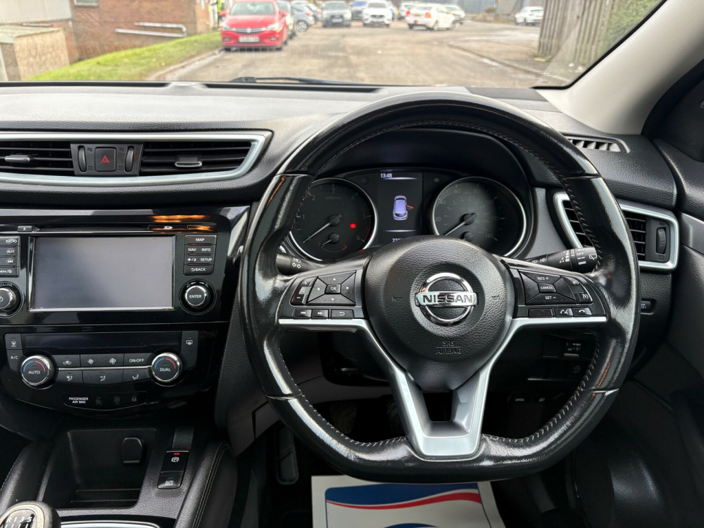 CALL, EMAIL OR WHATSAPP TO ARRANGE A VIEWING OR DISCUSS FINANCE OPTIONSIncluded when buying from Forsyth Street Cars:Minimum 10 Months MOTAn up-to date Oil Service1 Month extendable warranty with up-to 3 years cover5 Star Customer ServiceBreakdown cover options Driveaway Insurance available HPI CLEAR in alloy wheels, body coloured door mirrors, body coloured handles, chrome glass surround, electric heated auto-folding door mirrors, front and rear electric windows, matt silver roof rails, puncture repair kit, rear roof spoiler, 3 height adjustable rear headrests, 60-40 split rear folding seats, ambient lighting centre console, auto wipers, boot light, centre console storage and armrest, chrome interior door handles, daytime running lights dip function when turn signal applied, driver seat height adjustment, drivers seat with manual lumbar support, dual zone climate control air conditioning, front and rear door pockets with drink holders, glossy black dash trim, height adjustable front head restraints, interior ambient lighting, leather d shaped steering wheel, leather gear lever, leather knee pad, luggage board system, one touch 4 x auto windows with illuminated switches, parcel shelf - stow function under luggage board, passengers seat with manual lumbar support, pollen filter, remote audio control, seats - passengers height adjustment, start push button, steering wheel mounted audio controls, synthetic leather wrapped door handle with contrasting stitching, tech pack, tilt and telescopic adjustable steering wheel, 6 speakers, am-fm-cd audio system with dab, aux socket for mp3 player, advanced drive assist display - 5in tft coloured screen, bluetooth with audio streaming, front 12v power sockets x2, nissan connect 7in touchscreen navigation and entertainment system, rear usb port, smartphone app integration, usb port, autohold function - stand still assist, driver-passenger-side and curtain airbags, esp abs ebd and brake assist, electric parking brake, front and rear seat belts with load limiter and pretensioners, front and rear seatbelt warning, height adjustable front seatbelts, hill start assist, isofix child seat anchoring points - rear x2, nissan anti theft system immobiliser, nissan intelligent key, passenger airbag deactivation system, rear door child locks, rear wiper with reverse link, remote central locking with superlocking, safety shield plus, smart vision pack, thatcham category 1 alarm, cruise control with speed limiter, electric speed-sensitive power steering, intelligent around view monitor, intelligent park assist, nissan chassis controls, outside temperature sensor, rear view camera, selectable steering - normal or sport, tpms - tyre pressure monitoring system, trip computer, underbody vortex generators, front fog lights, halogen headlamps, intelligent auto headlight, led daytime running lights