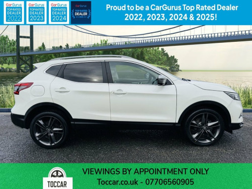 We are pleased to offer this Nissan Qashqai 1.5 dCi N-Motion SUV 5dr 115ps in White. This car is excellent condition both inside and out. The Specification Includes; 19in Black Ibiscus Alloy Wheels, Panoramic Sunroof, 7in Touchscreen Satellite Navigation, Dual Zone Automatic Air Conditioning, Rear Camera with All Around View, Front and Rear Parking Sensors, Lane Departure Warning System, Stop/Start System, DAB Radio, AM/FM Radio CD Audio System, Bluetooth, Apple CarPlay preparation, Privacy Glass, Traffic Sign Recognition, Cruise Control, LED pack, Electric Front Windows and Remote Central Locking. We will supply this car with an MOT (no advisories) and service carried out by an approved service centre. For further peace of mind Autoguard nationwide warranties are available to purchase. Part Exchange welcome. Viewing by appointment please. Finance available. Please see our wide selection of quality cars www.toccar.co.uk 19in Alloy Wheels - Ibiscus, 3 Height Adjustable Rear Headrests, 6 Speakers, 60-40 Split Rear Folding Seats, Advanced Drive Assist Display - 5in TFT , AM-FM-CD Audio System with DAB, Ambient Lighting Centre Console, Auto Wipers, AutoHold Function - Stand Still Assist, AUX Socket for MP3 Player, Bluetooth with Audio Streaming, Body Coloured Handles, Boot Light, Carbon Graphite Dash Trim, Centre Console Storage and Armrest, Chrome Glass Surround, Chrome Interior Door Handles, Cruise Control with Speed Limiter, Daytime Running Lights Dip Function When, Driver Seat Height Adjustment, Driver-Passenger-Side and Curtain Airbag, Drivers Seat with Manual Lumbar Support, Dual Zone Climate Control Air