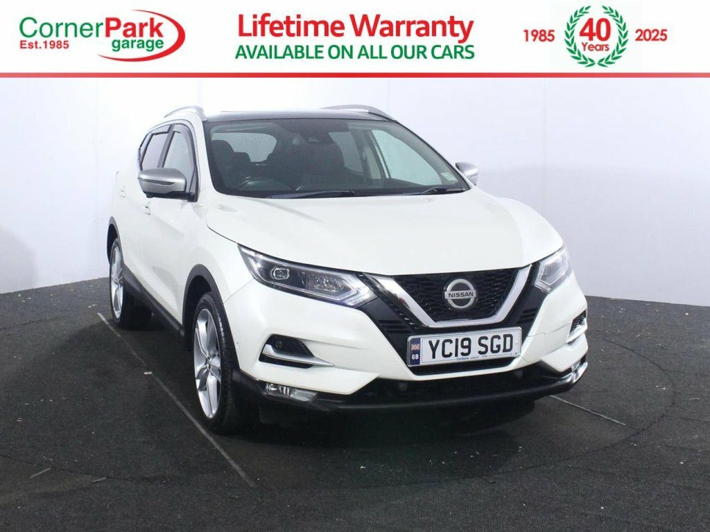 2 Owners. Service history with 3 services. Last serviced at 42,661 miles. This 2019 Nissan Qashqai 1.5 dCi N-Motion is a stylish, well-equipped family SUV that blends efficiency with comfort and technology. The N-Motion specification adds a more upmarket look with 19-inch Ibiscus alloy wheels, front and rear styling pack, Gloss Silver mirror caps, and Matt Silver roof rails, while the Glass Roof Pack gives the cabin a light, airy feel. The refined 1.5 dCi diesel engine and Euro 6 compliance make it an attractive choice for drivers covering higher mileages who still want low running costs. Inside, the Qashqai offers a comfortable and modern environment with Monoform front seats, a D-shaped leather steering wheel, ambient interior lighting, and practical touches like a centre console with armrest, luggage board system, and multiple storage areas. Technology highlights include the NissanConnect 7-inch touchscreen navigation and entertainment system, Bluetooth with audio streaming, DAB radio, USB/AUX connectivity, and a 5-inch Advanced Drive Assist TFT display in the instrument cluster. Dual-zone climate control, front and rear electric windows, and keyless entry with push-button start help make everyday use simple and convenient. Driver assistance and safety features are a major strength on this N-Motion model. The Intelligent Around View Monitor with Intelligent Park Assist, rear view camera, and front and rear parking sensors make manoeuvring easy, while systems such as Safe 19in Alloy Wheels - Ibiscus, 3 Height Adjustable Rear Headrests, 6 Speakers, 60-40 Split Rear Folding Seats, Advanced Drive Assist Display - 5in TFT , AM-FM-CD Audio System with DAB, Ambient Lighting Centre Console, Auto Wipers, AutoHold Function - Stand Still Assist, AUX Socket for MP3 Player, Bluetooth with Audio Streaming, Body Coloured Handles, Boot Light, Carbon Graphite Dash Trim, Centre Console Storage and Armrest, Chrome Glass Surround, Chrome Interior Door Handles, Cruise Control with Speed Limiter, Daytime Running Lights Dip Function When, Driver Seat Height Adjustment, Driver-Passenger-Side and Curtain Airbag, Drivers Seat with Manual Lumbar Support, Dual Zone Climate Control Air