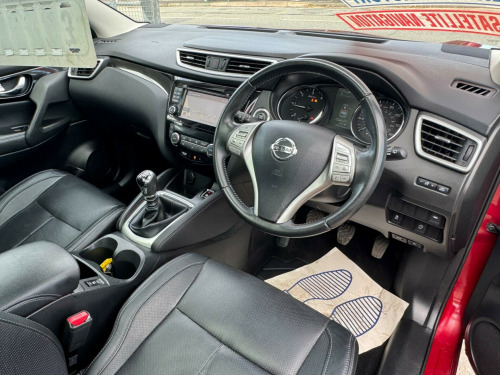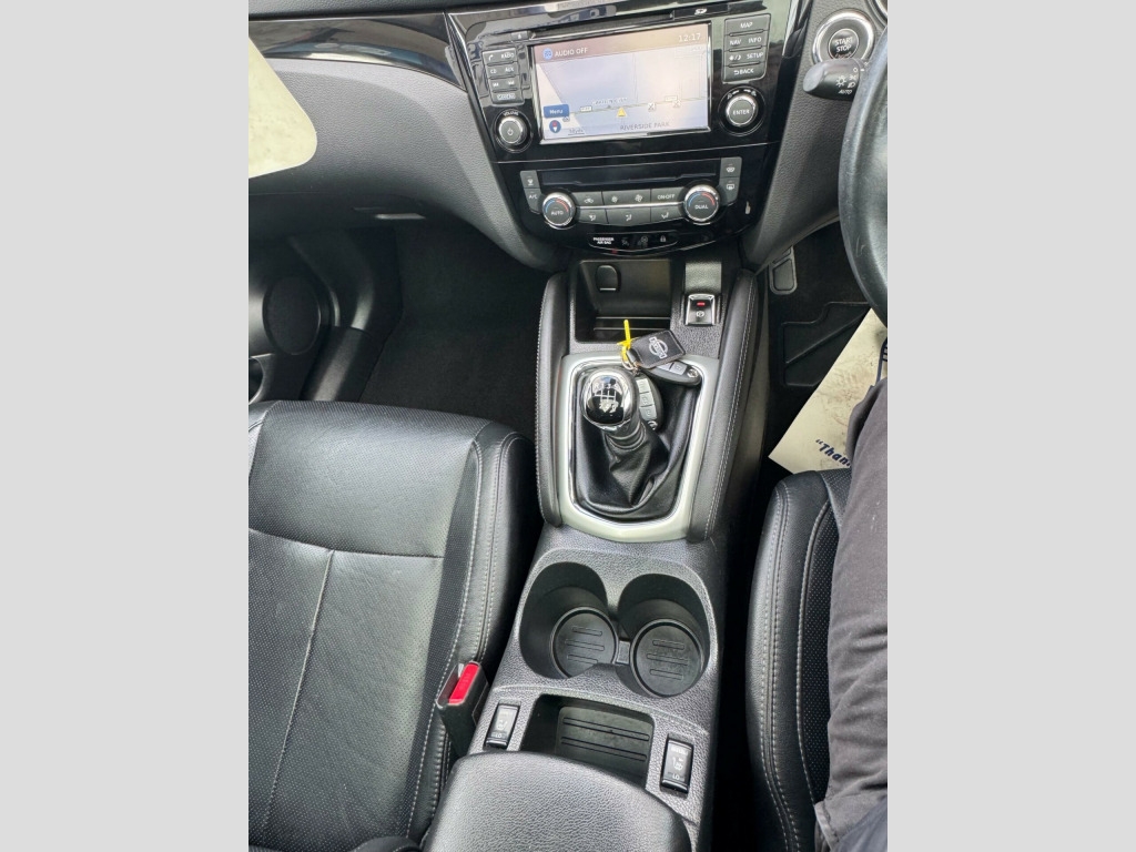 FINANCE AVALIBALE. 12V Socket - Front, 18in Alloy Wheels - Onyx, ABS - Anti Lock Brakes, AUX-In Socket, Active Front Headrests with Height Adjustment, Airbag - Driver, Airbag - Front Passenger, Airbags - Curtain, Airbags - Side, Alarm - Ultrasonic, Armrest - Rear, Around View Monitor - 360 Bird-View, Auto Rain Sensing Wipers, Automatic Lighting System, Brake Assist, CD Radio, Colour Front-Rear and Passenger Side Cameras, Cruise Control with Speed Limiter, Door Mirrors - Electric Adjustment and Heated, Drive Computer, Driver Seat Height Adjustment, Dual Zone Climate Control, EBD - Electronic Brakeforce Distribution, ESP - Electronic Stability Programme, Electric Folding Door Mirrors, Electric Speed-Sensitive Power Steering, Electric Windows - Front and Rear, Engine Immobiliser, Front Armrest, Front Cupholders x2, Front Fog Lights, Glovebox with Cooler Function, Head Restraints - 3 Rear, ISOFIX Child Seat Anchoring Points, Leather Steering Wheel, Nissan Connect 5in Touch-Screen Navigation System, Panoramic Glass Roof, Pollen Filter, Power Assisted Steering, Rear Cupholder, Rear Door Child Locks, Rear Parking Sensors, Rear Privacy Glass, Remote Central Locking with Superlocking, Reversing Camera, Roof Rails, Seats - 60-40 Split Foldable Rear Bench, Seats - Drivers Lumbar Support, Steering Wheel Mounted Audio Controls, Tilt and Telescopic Adjustable Steering Wheel, Traction Control, USB - iPod Connectivity.