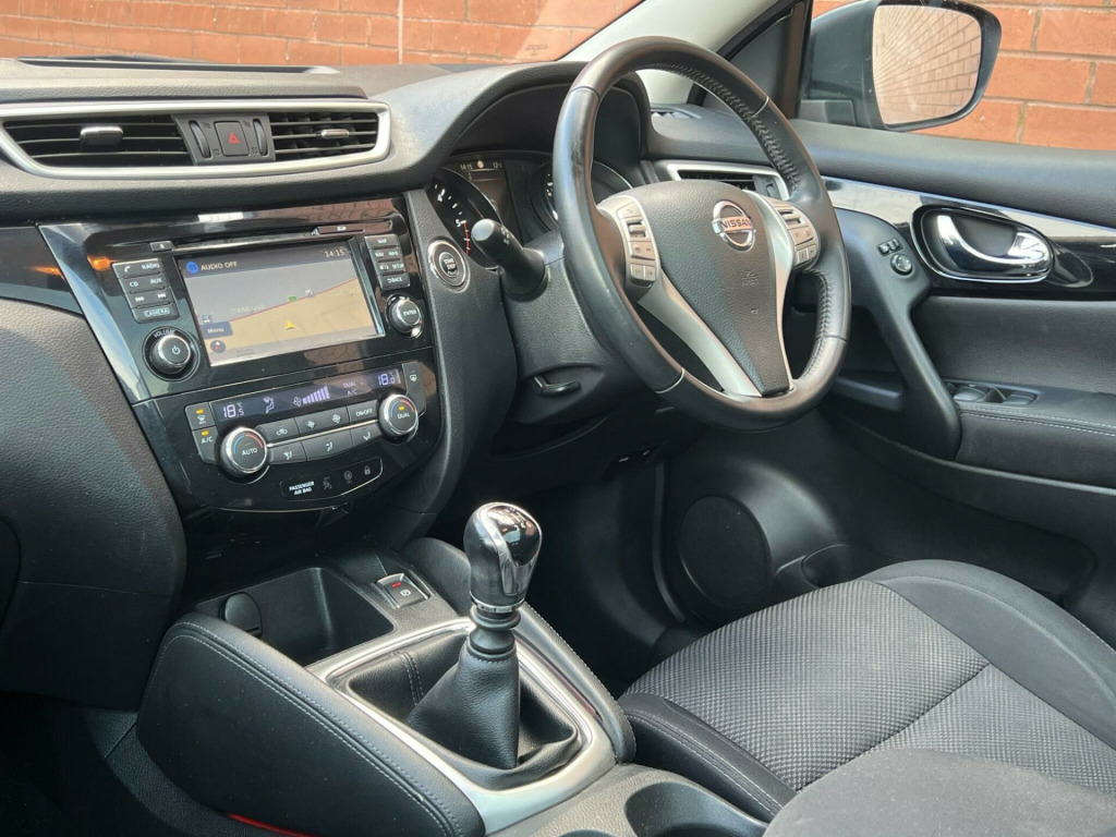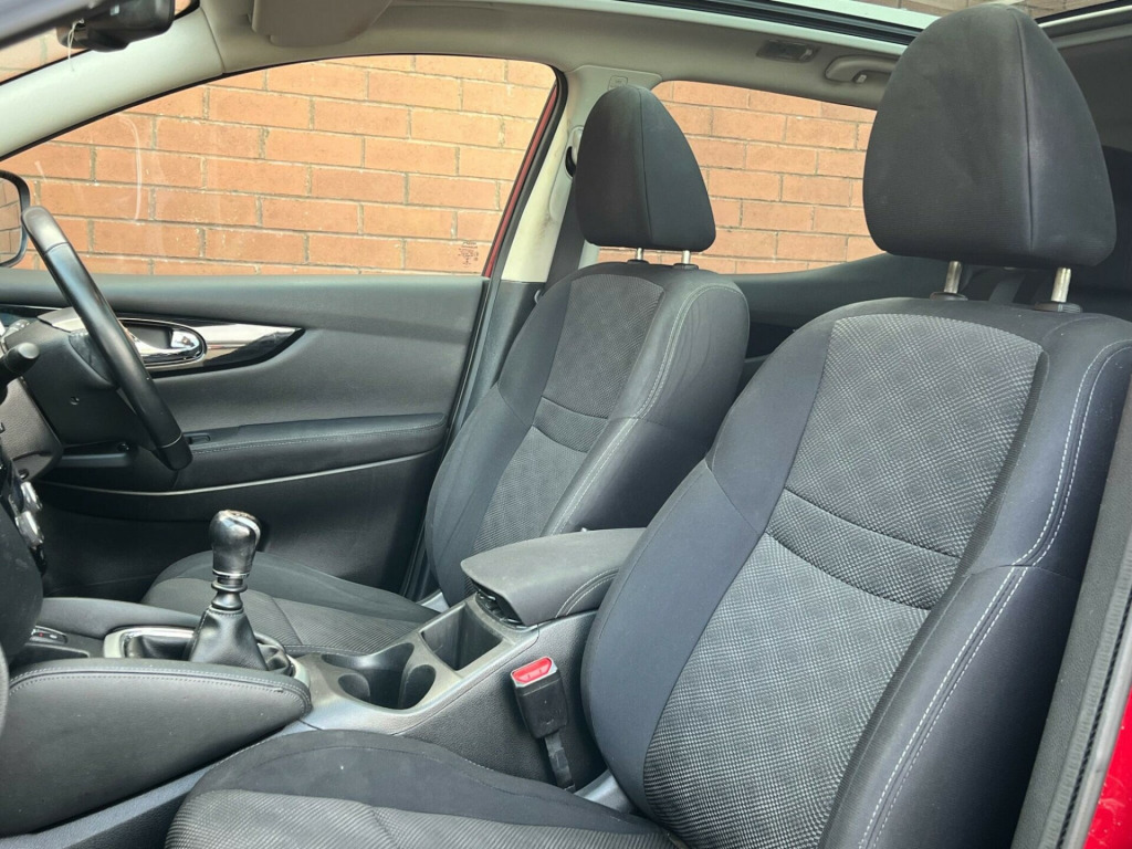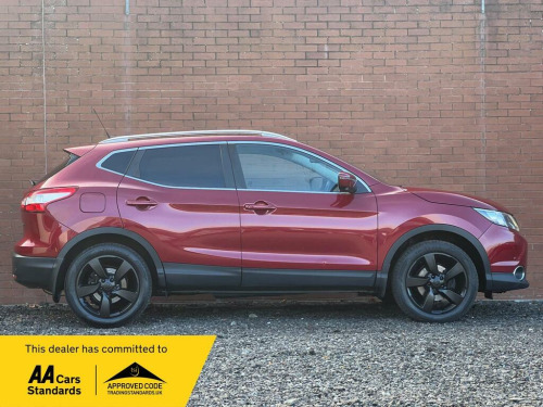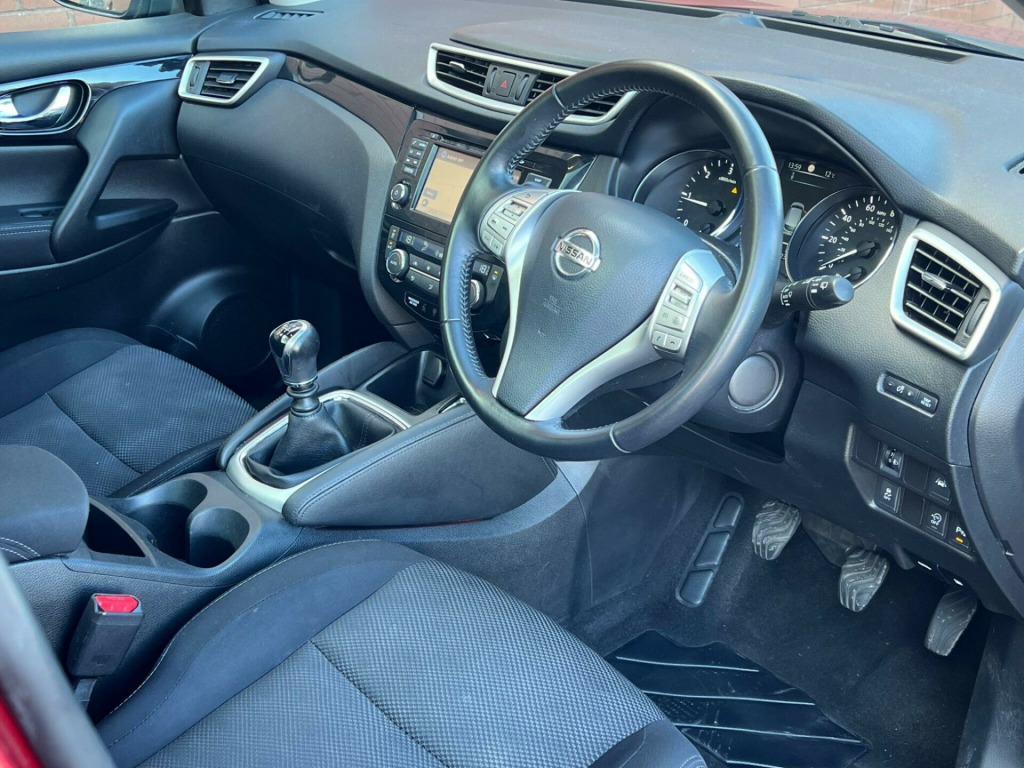 This 2015 Nissan Qashqai dCi n-tec+ boasts a single owner from new, offering a well cared for example of this popular crossover. Powered by an efficient 1.5L Diesel engine, this Euro 6 compliant model combines practicality with a refined driving experience. Inside, you'll find a host of desirable features including a fixed Panoramic Glass Roof that floods the cabin with light, Bluetooth integration for seamless phone connectivity, and front and rear parking sensors to aid manoeuvrability. The Intelligent Key system allows for convenient keyless entry, making your daily journeys that little bit easier.This Qashqai stands out with its impressive fuel economy, achieving a remarkable 71 miles per gallon, which indicates it is more economical than many similar vehicles. Furthermore, its low CO2 emissions and placement in a low insurance group highlight its cost effectiveness, making it an attractive choice for budget conscious drivers. This combination of efficiency, affordability, and thoughtful features makes the Qashqai dCi n-tec+ a compelling option., in alloy wheels - diamond cut, 6 speakers, 60-40 split rear folding seats, abs - anti lock brakes, aux-in socket, airbag - driver, airbag - passenger, airbags - curtain, airbags - side, alarm, armrest - rear, around view monitor - 360 bird-view, auto dimming rear view mirror, auto rain sensing wipers, black honeycomb front grille, body coloured handles, brake assist, bumpers - body coloured, chrome glass surround, climate control - dual zone, colour side camera, cruise control with speed limiter, dab radio, door mirrors - body coloured, door mirrors - power fold and heated, driver seat height adjustment, ebd - electronic brakeforce distribution, esp - electronic stability programme, electric speed-sensitive power steering, front armrest, front collision avoidance, front fog lights, front and rear electric windows, head restraints - active front, head restraints - rear, headlights - auto, headlights - auto high-low beam, hill start assist, isofix childseat anchorage points - middle row outer seats, immobiliser, intelligent key, interior ambient lighting, led daytime running lights, lane departure warning, leather gear knob, leather steering wheel, luggage board system, lumbar support, panoramic glass roof, parking sensor - front, pollen filter, puncture repair kit, push start-stop button, radio-cd, rear cupholder, rear door child locks, rear parking sensor, rear privacy glass, roof rails - satin, satellite navigation - nissan connect, seats - passengers height adjustment, smart vision pack, speed-sensitive autolock function, steering wheel mounted audio controls, tpms - tyre pressure monitoring system, telephone - bluetooth integration, tilt and telescopic adjustable steering wheel, touch screen 7in, traction control, traffic sign recognition, trip computer, usb port, e-pkb - electric parking brake