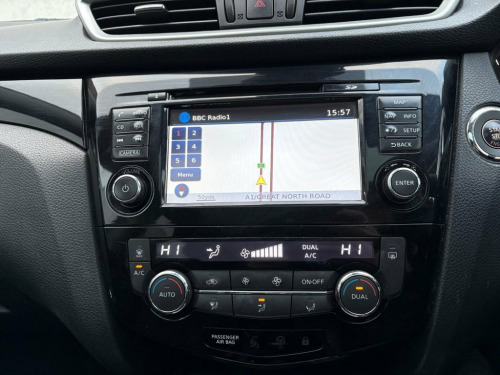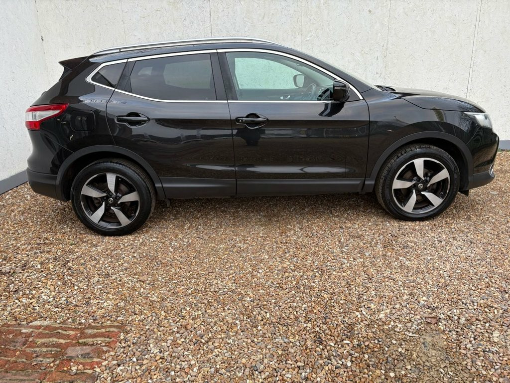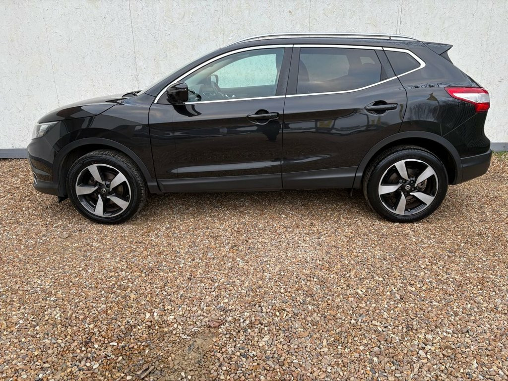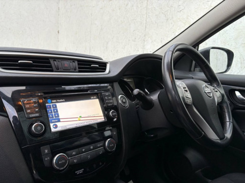 THIS WELL PRESENTED NISSAN QASHQAI FINISHED IN METALLIC BLACK WITH 2 PREVIOUS OWNERS COMES WITH FULL SERVICE HISTORY, 2 KEYS AND COSTS ONLY £20 A YEAR FOR ROAD TAX. FEATURES INCLUDE TOUCHSCREEN SATELLITE NAVIGATION, BLUETOOTH HANDS-FREE, DUAL CLIMATE CONTROL WITH AIR CONDITIONING, FULL PANORAMIC GLASS ROOF, DAB DIGITAL RADIO/CD PLAYER WITH AUX AND USB POINT, BLUETOOTH MEDIA CONNECTIVITY, FRONT AND REAR PARKING SENSOR WITH 360 DEGREE REVERSING CAMERA, MULTI FUNCTION LEATHER STEERING WHEEL, CRUISE CONTROL, KEYLESS START/STOP, AUTO LIGHTS, AUTO WIPERS, KEYLESS START/STOP, 4 X ELECTRIC WINDOWS, ELECTRIC POWER FOLDING MIRRORS, DRIVERS HEIGHT ADJUSTER, REMOTE CENTRAL LOCKING, 6 SPEED MANUAL GEARBOX AND 18" ALLOY WHEELS. 18in Alloy Wheels - Diamond Cut, 6 Speakers, 60-40 Split Rear Folding Seats, ABS - Anti Lock Brakes, AUX-In Socket, Airbag - Driver, Airbag - Passenger, Airbags - Curtain, Airbags - Side, Alarm, Armrest - Rear, Around View Monitor - 360 Bird-View, Auto Dimming Rear View Mirror, Auto Rain Sensing Wipers, Black Honeycomb Front Grille, Body Coloured Handles, Brake Assist, Bumpers - Body Coloured, Chrome Glass Surround, Climate Control - Dual Zone, Colour Side Camera, Cruise Control with Speed Limiter, DAB Radio, Door Mirrors - Body Coloured, Door Mirrors - Power Fold and Heated, Driver Seat Height Adjustment, EBD - Electronic Brakeforce Distribution, ESP - Electronic Stability Programme, Electr
