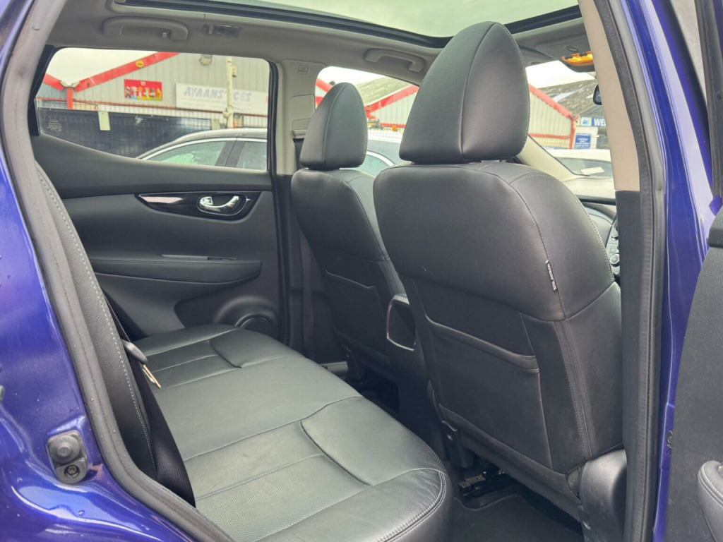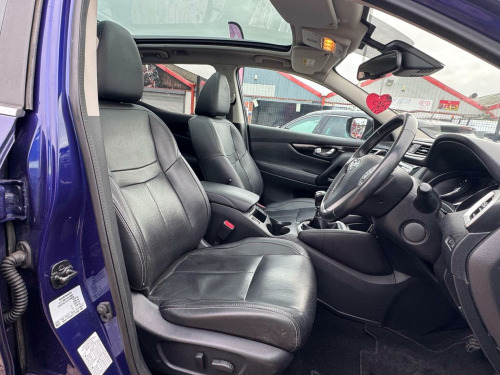 Vincent Cars are pleased to offer our NISSAN QASHQAI in Metallic BLUE. This fantastic, well-equipped and popular 4X4 also comes with standard features such as FULL SERVICE HISTORY (SERVICED CURRENT MILES & 10 SERVICE STAMPS), LONG MOT 10/2026, HUGE SPECIFICATIONS SUCH AS BLIND SPOT MONITORING ASSIST, HEATED SEATS, LEATHER SEATS, PANORAMIC ROOF, ROOF BARS, XENONS LIGHTS, 360 CAMERAS, PARKING SENSORS, SAT NAV HDD, 2 KEYS, PRIVACY GLASS Air Conditioning,, Bluetooth Phone Connectivity, and so much more! Our helpful and attentive team at Vincent Cars are available 7 days a week to help you find the perfect car to suit your needs. Our dedicated team remain on hand to provide you with a CLICK & COLLECT service, simply call, message or Live Chat and our team will answer any questions that you may have before you simply secure this vehicle and arrange collection or delivery – we can now offer LIVE VIRTUAL APPOINTMENTS at the click of a button, just ask! All Vincent Cars undergo a comprehensive series of stringent tests and inspections. These checks include history, service, hpi, previous Mots. Our enhanced warranty gives 3 months standard on all our vehicles, with the option to opt for more if desired giving you full peace of mind and taking control. We are proud to be part of the motoring industry established over many years and since have grown into one of the UKs valuable motor groups. All major credit debit cards accepted, indoor showroom, Nationwide Delivery available.