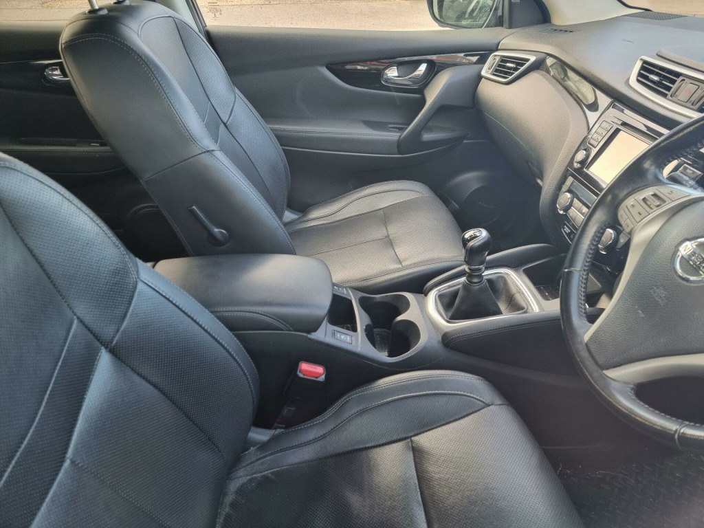 This 2015 Nissan Qashqai dCi Tekna offers an exceptional blend of efficiency and advanced technology. As a Euro 6 compliant vehicle, it features a 1.5L Diesel engine that achieves an impressive 71 mpg, making it a very economical choice for daily driving. The Tekna trim level ensures a premium experience, enhanced by Bi-LED headlights for superior visibility and heated front seats for added comfort. Manoeuvring is made effortless with the Around View Monitor, providing a 360 bird's eye view, complemented by a rear view camera. Stay connected on the go with seamless Bluetooth integration for your telephone.The benefits of this Qashqai extend to its running costs, with a low insurance group rating and low CO2 emissions, indicating it is more affordable to insure and more environmentally friendly than many comparable vehicles. These highlights demonstrate how this particular model stands out, offering a more cost effective and responsible driving experience.. 19in Alloy Wheels - 5-Spoke, 6 Speakers, 60-40 Split Rear Folding Seats, ABS - Anti Lock Brakes, AUX-In Socket, Airbag - Driver, Airbag - Passenger, Airbags - Curtain, Airbags - Side, Alarm, Armrest - Rear, Around View Monitor - 360 Bird-View, Auto Dimming Rear View Mirror, Auto Rain Sensing Wipers, Black Honeycomb Front Grille, Blind Spot Warning, Body Coloured Handles, Brake Assist, Bumpers - Body Coloured, Chrome Glass Surround, Climate Control - Dual Zone, Colour Side Camera, Cruise Control with Speed Limiter, DAB Radio, Door Mirrors - Body Coloured, Door Mirrors - Power Fold and Heated, Driver Attention Alert, Driver Seat Height Adjustment, EBD - Electronic Brakeforce Distribution, ESP - Electronic Stability Programme, Electric Speed-Sensitive Power Steering, Fatigue Alert, Front Armrest, Front Collision Avoidance, Front Fog Lights, Front and Rear Electric Windows, Head Restraints - Active Front, Head Restraints - Rear, Headlights - Auto, Headlights - Auto High-Low Beam, Headlights - Automatic Levelling, Headlights - Bi-LED, Heated Windscreen, Hill Start Assist, ISOFIX Childseat Anchorage Points - Middle Row Outer Seats, Immobiliser, Intelligent Key, Intelligent Park Assist, Interior Ambient Lighting, LED Daytime Running Lights, Lane Departure Warning, Leather Gear Knob, Leather Steering Wheel, Luggage Board System, Lumbar Support, Moving Object Detection, Parking Sensor - Front, Pollen Filter, Puncture Repair Kit, Push Start-Stop Button, Radio-CD, Rear Cupholder, Rear Door Child Locks, Rear Parking Sensor, Rear Privacy Glass, Rear View Camera, Roof Rails - Satin, Safety Shield, Satellite Navigation - Nissan Connect, Seats - Drivers Electric Adjustment, Seats - Heated Front, Seats - Passengers Height Adjustment, Smart Vision Pack, Speed-Sensitive Autolock Function, Steering Wheel Mounted Audio Controls, TPMS - Tyre Pressure Monitoring System, Telephone - Bluetooth Integration, Tilt and Telescopic Adjustable Steering Wheel, Touch Screen 7in, Traction Control, Traffic Sign Recognition, Trip Computer, USB Port, e-PKB - Electric Parking Brake. Part service history