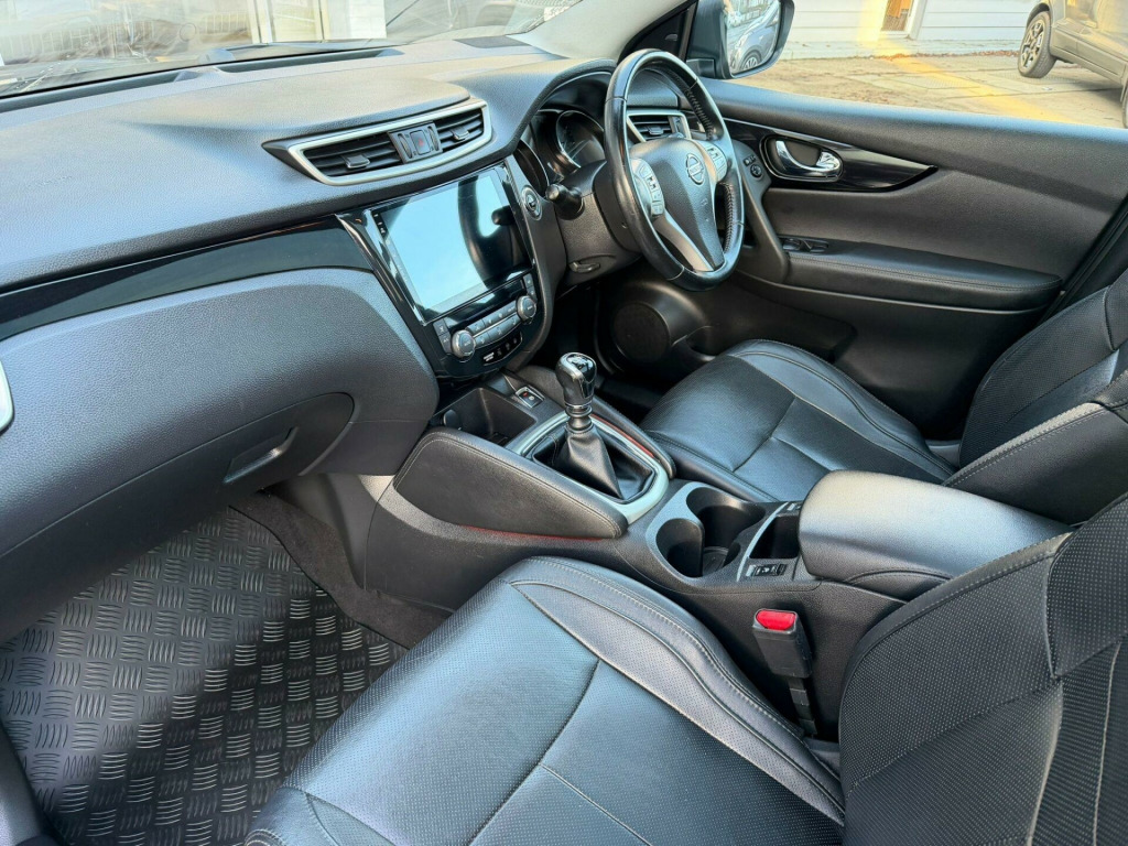 This 2016 Nissan Qashqai dCi Tekna boasts a clear vehicle history check, offering you peace of mind. This popular model features a 1.5L Diesel engine and meets Euro 6 emission standards. The Tekna trim level comes equipped with desirable features such as front and rear parking sensors with parking assistance, heated front seats for added comfort, and Bi-LED headlights for excellent visibility. Additionally, this Qashqai includes Blind Spot Warning, enhancing safety during your journeys.You can expect impressive efficiency with this Qashqai, achieving a remarkable 71 mpg. Its low CO2 emissions and low insurance group rating further highlight its cost effectiveness, indicating that it is a more economical choice compared to many other vehicles in its class.. 19in Alloy Wheels - 5-Spoke, 6 Speakers, 60-40 Split Rear Folding Seats, ABS - Anti Lock Brakes, AUX-In Socket, Airbag - Driver, Airbag - Passenger, Airbags - Curtain, Airbags - Side, Alarm, Armrest - Rear, Around View Monitor - 360 Bird-View, Auto Dimming Rear View Mirror, Auto Rain Sensing Wipers, Black Honeycomb Front Grille, Blind Spot Warning, Body Coloured Handles, Brake Assist, Bumpers - Body Coloured, Chrome Glass Surround, Climate Control - Dual Zone, Colour Side Camera, Cruise Control with Speed Limiter, DAB Radio, Door Mirrors - Body Coloured, Door Mirrors - Power Fold and Heated, Driver Attention Alert, Driver Seat Height Adjustment, EBD - Electronic Brakeforce Distribution, ESP - Electronic Stability Programme, Electric Speed-Sensitive Power Steering, Fatigue Alert, Front Armrest, Front Collision Avoidance, Front Fog Lights, Front and Rear Electric Windows, Head Restraints - Active Front, Head Restraints - Rear, Headlights - Auto, Headlights - Auto High-Low Beam, Headlights - Automatic Levelling, Headlights - Bi-LED, Heated Windscreen, Hill Start Assist, ISOFIX Childseat Anchorage Points - Middle Row Outer Seats, Immobiliser, Intelligent Key, Intelligent Park Assist, Interior Ambient Lighting, LED Daytime Running Lights, Lane Departure Warning, Leather Gear Knob, Leather Steering Wheel, Luggage Board System, Lumbar Support, Moving Object Detection, Parking Sensor - Front, Pollen Filter, Puncture Repair Kit, Push Start-Stop Button, Radio-CD, Rear Cupholder, Rear Door Child Locks, Rear Parking Sensor, Rear Privacy Glass, Rear View Camera, Roof Rails - Satin, Safety Shield, Satellite Navigation - Nissan Connect, Seats - Drivers Electric Adjustment, Seats - Heated Front, Seats - Passengers Height Adjustment, Smart Vision Pack, Speed-Sensitive Autolock Function, Steering Wheel Mounted Audio Controls, TPMS - Tyre Pressure Monitoring System, Telephone - Bluetooth Integration, Tilt and Telescopic Adjustable Steering Wheel, Touch Screen 7in, Traction Control, Traffic Sign Recognition, Trip Computer, USB Port, e-PKB - Electric Parking Brake.