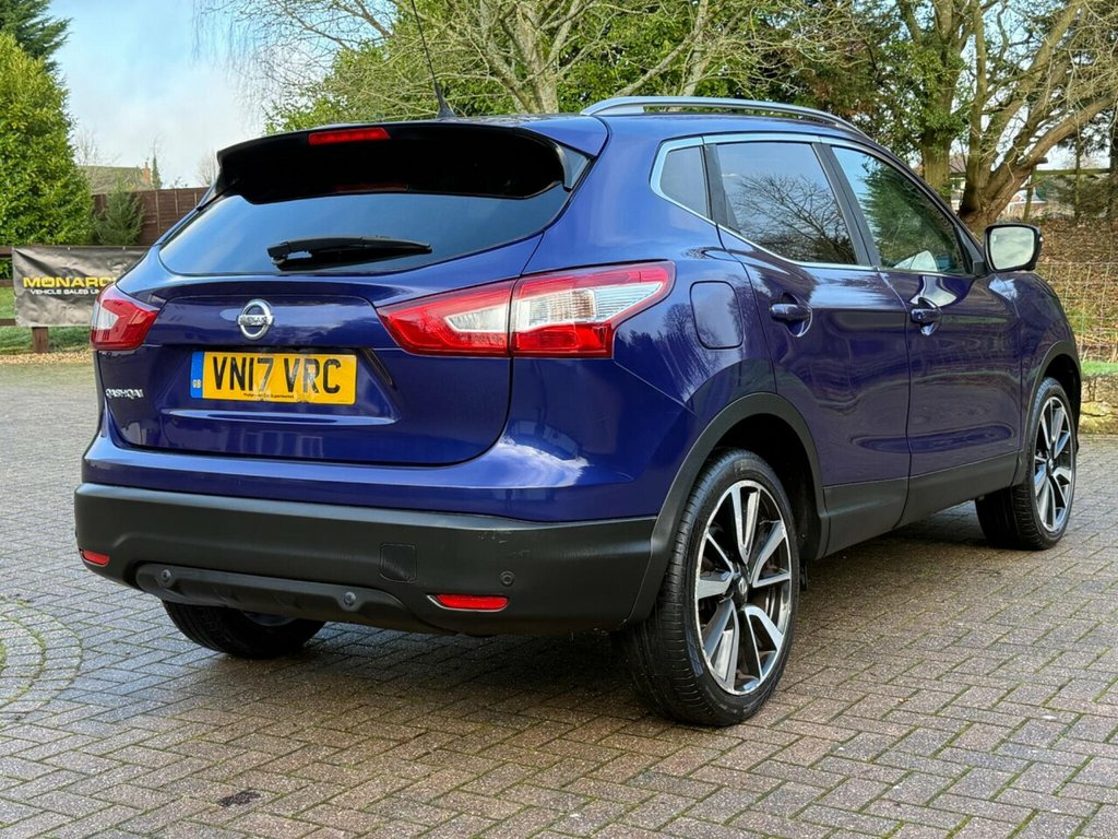 12 MONTHS MOT , This 2017 Nissan Qashqai dCi Tekna is a superb example of this popular model, offering a blend of style, practicality, and advanced technology. Powered by an efficient 1.5L Diesel engine, this Euro 6 compliant vehicle boasts an impressive fuel economy of up to 71 miles per gallon, making it an economical choice for both city driving and longer journeys. The Tekna trim level comes generously equipped, featuring Intelligent Key with keyless entry for effortless access, and dual zone climate control air conditioning to ensure comfort for all occupants. The Executive and Heat packs add further refinement, including heated seats for those colder days, while the Tech pack enhances convenience with Bluetooth connectivity and a 360 degree parking assistance camera system. The benefits of choosing this particular Qashqai are clear when you consider its highlights. Its low CO2 emissions and low insurance group rating indicate that running costs are kept to a minimum, setting it apart from many other vehicles in its class. This combination of excellent fuel efficiency, desirable features, and cost effective ownership makes the 2017 Nissan Qashqai dCi Tekna a compelling option for anyone seeking a versatile and well appointed family car. 19in Alloy Wheels - 5-Spoke, 3 x 3-Point Rear Seatbelts with ELR, 5in High Definition Full Colour TFT Scre, 6 Speakers, 60-40 Split Rear Folding Seats, AUX Socket for MP3 Player, Alarm, Automatic Folding Door Mirrors, Automatic Lights and Wipers, Black Honeycomb Front Grille, Bluetooth, Body-coloured Bumpers - Handles and Mirr, CD Radio, Chrome Glass Surround, Cruise Control with Speed Limiter, Drive Computer, Driver Seat Height Adjustment, Driver-Passenger-Side and Curtain Airbag, Drivers Side One-touch and Anti-trap Win, Dual Zone Climate Control Air Conditioni, ESP ABS EBD and Brake Assist, Electric Speed-Sensitive Power Steering, Executive Pack, Front Centre Console and Armrest, Front Fo