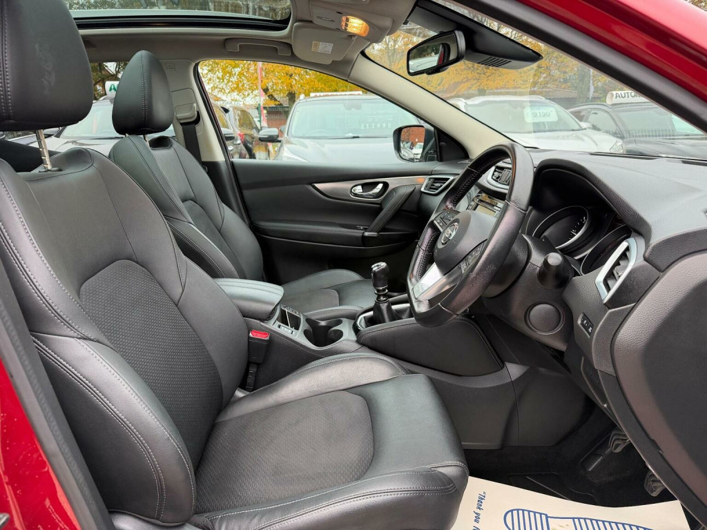 we are delighted to offer you a fantastic example of Nissan Qashqai 1.5 dCi Tekna Euro 6 (s/s) 5dr, comes with FULL SERVICE HISTORY, 6 service stamps, just had a service, 6 months nationwide warranty and BREAK DOWN COVER, MOT valid until 14 October 2026, 4 GOOD tires, TOP SPEC WITH half leather heated seats BIG SCREEN SAT NAV 360 CAMERA media Bluetooth USB audio panoramic roof cruise control front and rear parking sensors and lots more, RUNS AND DRIVES LIKE NEW, IN VERY GOOD CONDITION INSIDE AND OUT, NICE COLOUR, HPI clear, warranted mileage, full vosa history, comes with all document service record and spare key, all our cars are inspected and fully valeted, inspection test drive and part exchange welcome, all major credit debit and online payments accepted, LOW RATE FINANCE AVAILABLE, nationwide delivery available, please visit our website www.motorvillageltd.co.uk