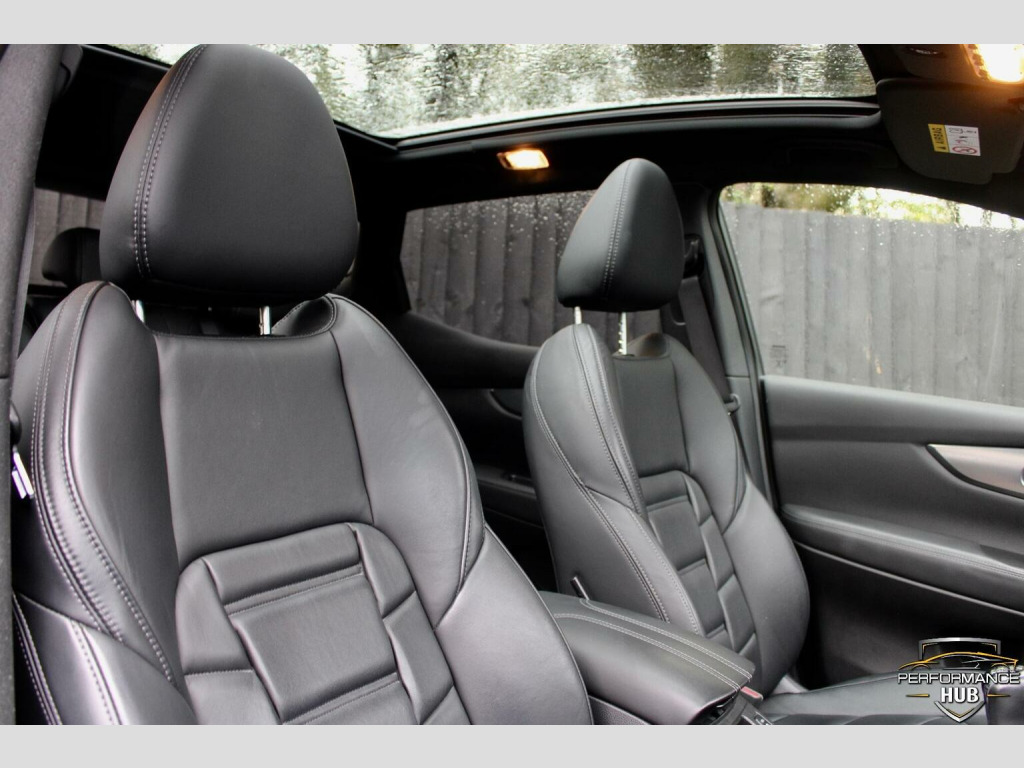 We are proud to offer his stunning Nissan Qashqai finished in the beautiful Grey with Black leather interior. This car comes with fixed panoramic roof, Bose sound system, 360 reverse camera, lane assist, steering assist, electric seats, sat nav, rear parking sensors, DAB radio, keyless start, roof rails, electric seats, plus much more