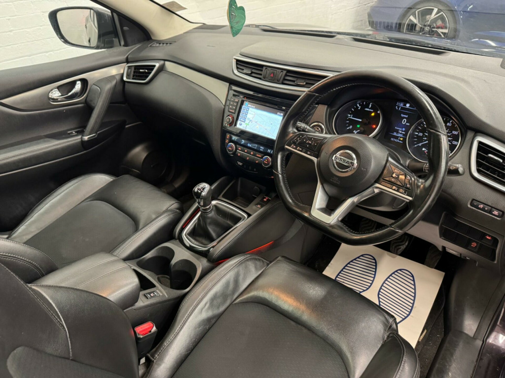 This 2018 Nissan Qashqai dCi Tekna is in great condition and comes with a full service history. It has been owned by just one previous keeper. It comes with a great spec including apple car play, sat nav, heated seats, cruise control, xenon headlights, parking sensors, 360 camerasIt features a 1.5L Diesel Engine and is Euro 6 compliant. The Tekna trim level includes Nissan's Safety Shield, which incorporates Blind Spot Assistance, and a Heat Pack for comfortable journeys with heated seats. For enhanced visibility, it is equipped with LED headlights, and parking is made simple with the Intelligent Around View Monitor offering a 360 degree camera. Connectivity is also a breeze thanks to the integrated Bluetooth system.This Qashqai stands out with an impressive fuel economy of 74 mpg, demonstrating its efficiency compared to other vehicles in its class. Furthermore, its low CO2 emissions and low insurance group highlight its cost effectiveness for owners. These factors combined make this Nissan Qashqai a sensible and well equipped choice. in alloy wheels, 3 height adjustable rear headrests, 60-40 split rear folding seats, am-fm radio and cd player, aux socket, adaptive front lighting system, advanced drive assist display - 5in tft coloured screen, ambient lighting centre console, anti dazzle rear view mirror, auto wipers, autohold function - stand still assist, bluetooth, body coloured door mirrors, body coloured handles, boot light, bose 8 speaker premium audio system, carbon graphite dash trim, chrome glass surround, chrome interior door handles, cruise control with speed limiter, dab digital radio, daytime running lights dip function when turn signal applied, driver seat height adjustment, driver-passenger-side and curtain airbags, drivers seat with manual lumbar support, dual zone climate control air conditioning, esp abs ebd and brake assist, electric auto-folding door mirrors, electric parking brake, electric speed-sensitive power steering, electrically adjustable drivers seat, executive pack, front 12v power sockets x2, front centre console and armrest, front seat belts with load limiter and pretensioners, front and rear door pockets with drink holders, front and rear electric windows, front and rear seatbelt warning, headlights - automatic levelling, headlights - high beam assist, headlights - led, heat pack, height adjustable front head restraints, height adjustable front seatbelts, hill start assist, isofix child seat anchoring points - rear x2, intelligent around view monitor, intelligent auto headlight, intelligent emergency braking, intelligent key, intelligent park assist, interior ambient lighting, led pack, led signature daytime running lights, led turn indicator on door mirrors, lane departure warning, leather d shaped steering wheel, leather gear lever, leather knee pad, luggage board system, matt silver roof rails, monoform front seats with plastic backboard, nissan anti theft system immobiliser, nissan chassis controls, nissanconnect evo touchscreen navigation and entertainment system, one touch 4 x auto windows with illuminated switches, outside temperature sensor, parcel shelf - stow function under luggage board, parking sensor - front, passenger airbag deactivation system, passengers seat with manual lumbar support, pollen filter, privacy glass, puncture repair kit, rear parking sensors, rear roof spoiler, rear view camera, rear wiper with reverse link, remote central locking, safety shield, seats - passengers height adjustment, selectable steering - normal or sport, shark fin antenna, smart vision pack, smartphone app integration, start push button, steering wheel mounted audio controls, synthetic leather wrapped door handle with contrasting stitching, tpms - tyre pressure monitoring system, tech pack, thatcham category 1 alarm, tilt and telescopic adjustable steering wheel, traffic sign recognition, trip computer, usb port, underbody vortex generators