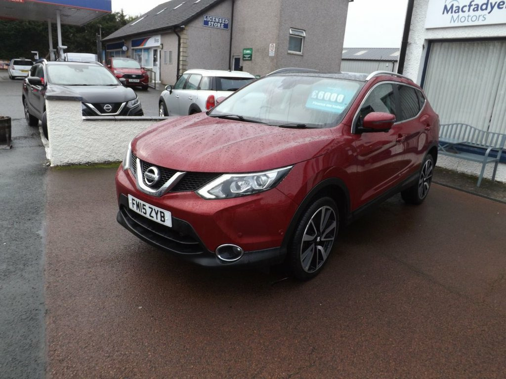Just in this sought after 2015 NISSAN QASHQAI 1.5 dCi Tekna SUV 5dr Diesel Manual 2WD Euro 5 (s/s) (110 ps), This vehicle includes2 keys, service history & pack, front and rear sensors, diamond-cut alloys, roof rails, and rear tinted windows. It has a panoramic roof, electric folding mirrors, and all-around electric windows. Inside, you'll find full leather seats with ISOFIX, a rear armrest with cup holders, and a push-start button. It's done about 99,000 miles and features a touchscreen monitor with DAB radio, sat-nav, Bluetooth, reverse and side cameras, dual climate control, an electric handbrake, a six-speed gearbox, heated seats, a front armrest, and multiple airbags for driver and passengers. Each vehicle comes with at least six months MOT, and if it's due an MOT or a service, it will be freshly done. We offer a range of warranties and finance options (terms and conditions apply). We can also send you an online brochure with a walkaround video sent to either your mobile or email address Don't hesitate to give us a call at 01786 842222 or visit our website at [email protected] to avoid disappointment! Manual transmission for full driving control. 2WD for efficient handling and stability. Stylish exterior with bold SUV stance. Advanced connectivity and navigation features. Renowned NISSAN reliability and build quality. 19in Alloy Wheels - 5-Spoke, 6 Speakers, 60-40 Split Rear Folding Seats, ABS - Anti Lock Brakes, Airbag - Driver, Airbag - Passenger, Airbags - Curtain, Airbags - Side, Alarm, Armrest - Rear, Around View Monitor - 360 Bird-View, Auto Dimming Rear View Mirror, Auto Rain Sensing Wipers, AUX-In Socket, Black Honeycomb Front Grille, Blind Spot Warning, Body Coloured Handles, Brake Assist, Bumpers - Body Coloured, Chrome Glass Surround, Climate Control - Dual Zone, Colour Side Camera, Cruise Control with Speed Limiter, DAB Radio, Door Mirrors - Body Coloured, Door Mirrors - Power Fold and Heated, Driver Attention Alert, Driver Seat Height Adjustment, e-PKB - Electric Parking Brake, EBD - Electron