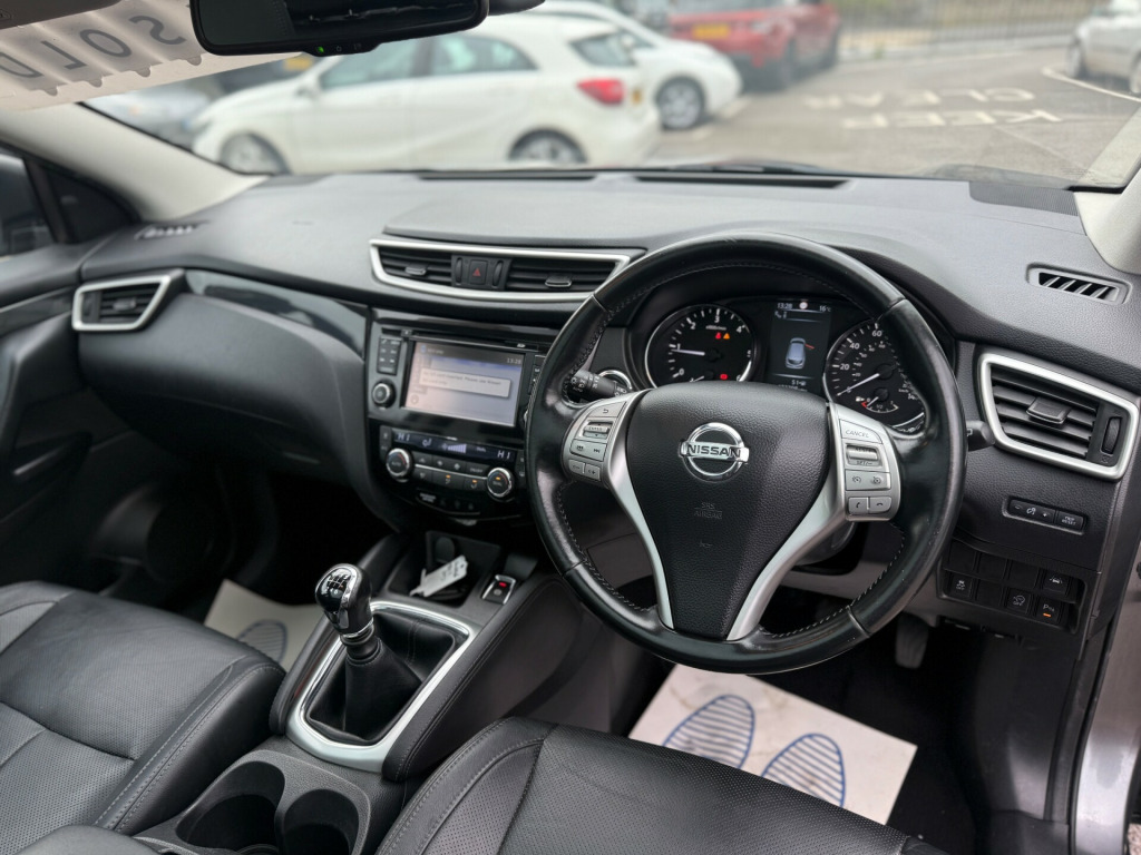 FULL SERVICE HISTORY WITH THE BENEFIT OF 8 SERVICE STAMPS AND A LONG MOT FULLY LOADED WITH FULL LEATHER INTERIOR HEATED SEATS FULL PAN ROOF SAT NAV REVERSING CAMERA PRIVACY GLASS FRONT AND REAR PARKING SENSORS HEATED FRONT SCREEN CRUISE CONTROL MEDIA CONNECTIVITY BLUETOOTH DAB AUX IN 6 SPEED AUTOMATIC CLIMATE CONTROL AUTOMATIC LIGHTS AND WIPERS in alloy wheels - 5-spoke, black honeycomb front grille, body coloured handles, bumpers - body coloured, chrome glass surround, door mirrors - body coloured, door mirrors - power fold and heated, front and rear electric windows, heated windscreen, puncture repair kit, rear privacy glass, roof rails, 6 speakers, aux-in socket, dab radio, radio-cd, satellite navigation - nissan connect, telephone - bluetooth integration, touch screen 7in, usb port, 60-40 split rear folding seats, armrest - rear, auto dimming rear view mirror, auto rain sensing wipers, climate control - dual zone, driver seat height adjustment, front armrest, head restraints - active front, head restraints - rear, interior ambient lighting, leather gear knob, leather steering wheel, luggage board system, lumbar support, pollen filter, push start-stop button, rear cupholder, seats - drivers electric adjustment, seats - heated front, steering wheel mounted audio controls, tilt and telescopic adjustable steering wheel, abs - anti lock brakes, airbag - driver, airbag - passenger, airbags - curtain, airbags - side, alarm, brake assist, ebd - electronic brakeforce distribution, esp - electronic stability programme, fatigue alert, front collision avoidance, hill start assist, isofix childseat anchorage points - middle row outer seats, immobiliser, intelligent key, rear door child locks, safety shield, smart vision pack, speed-sensitive autolock function, traction control, e-pkb - electric parking brake, around view monitor - 360 bird-view, blind spot warning, colour side camera, cruise control with speed limiter, driver attention alert, electric speed-sensitive power steering, intelligent park assist, lane departure warning, moving object detection, parking sensor - front, rear parking sensor, rear view camera, tpms - tyre pressure monitoring system, traffic sign recognition, trip computer, front fog lights, headlights - auto, headlights - auto high-low beam, headlights - automatic levelling, headlights - bi-led, led daytime running lights