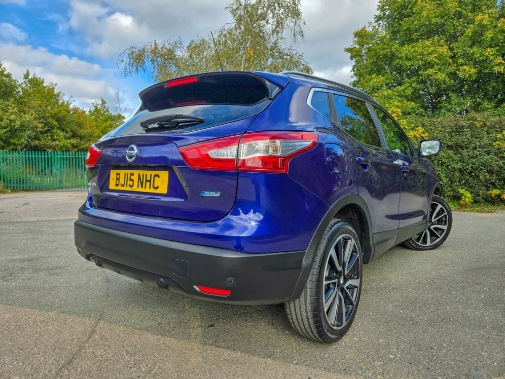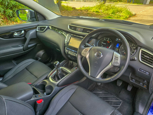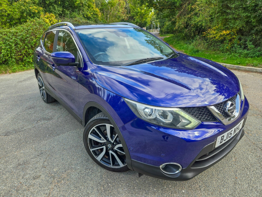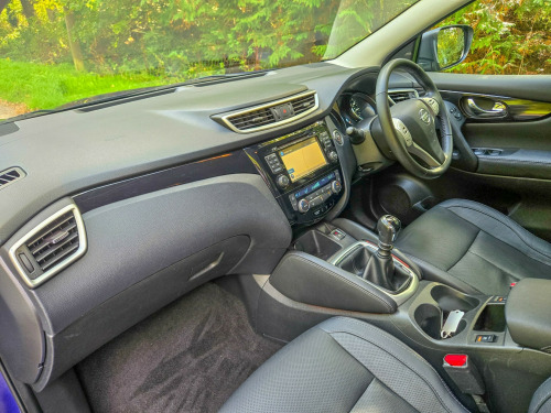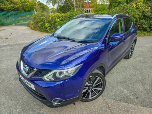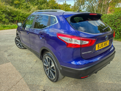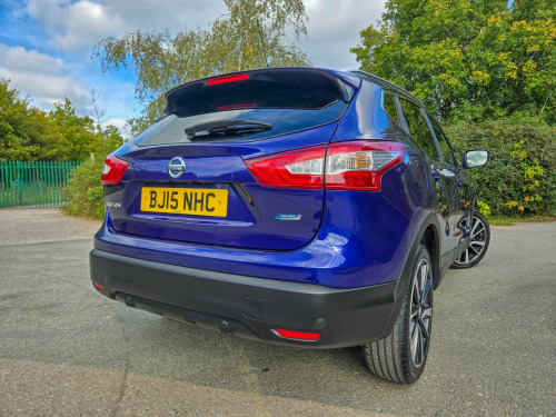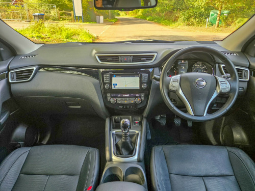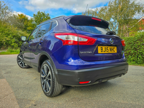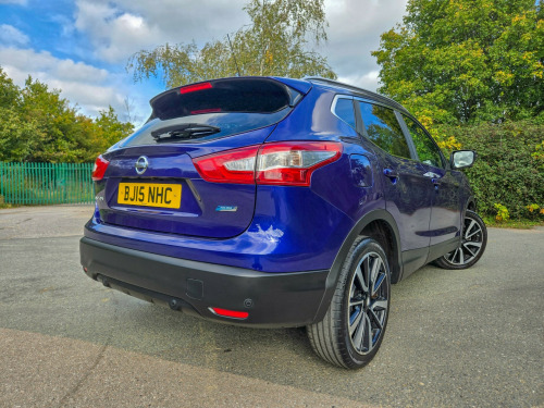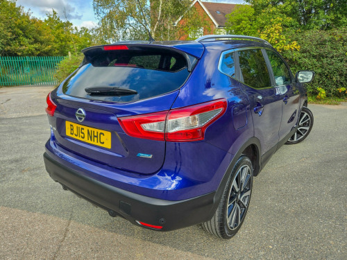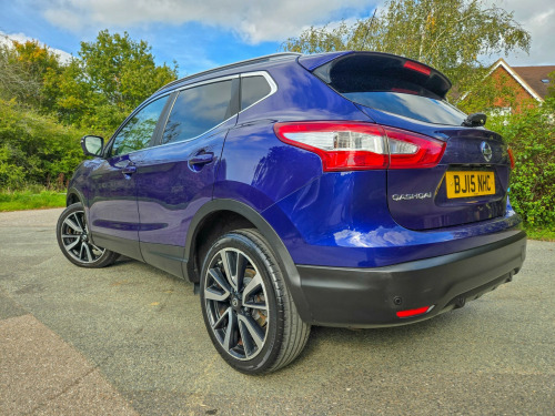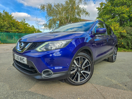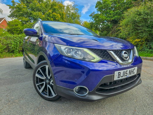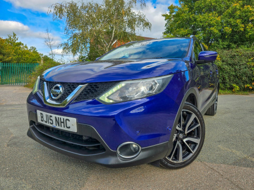 JUST SERVICED,CAMBELT DONE,NEW TYRES,LONG MOT,FINANCE WELCOMEThis 2015 Nissan Qashqai 1.5 dCi Tekna SUV has 86500 miles on the clock and runs on diesel, with an MOT that expires on 05/05/2026. This 5-door SUV boasts 5 seats and includes features such as 19in Alloy Wheels, Black Honeycomb Front Grille, Body Coloured Handles, Body Coloured Bumpers, and Chrome Glass Surround. With a manual transmission and 2WD Euro 5 (s/s) engine delivering 110 ps, this SUV is perfect for those seeking style and practicality., in alloy wheels - 5-spoke, black honeycomb front grille, body coloured handles, bumpers - body coloured, chrome glass surround, door mirrors - body coloured, door mirrors - power fold and heated, front and rear electric windows, heated windscreen, puncture repair kit, rear privacy glass, roof rails, 6 speakers, aux-in socket, dab radio, radio-cd, satellite navigation - nissan connect, telephone - bluetooth integration, touch screen 7in, usb port, 60-40 split rear folding seats, armrest - rear, auto dimming rear view mirror, auto rain sensing wipers, climate control - dual zone, driver seat height adjustment, front armrest, head restraints - active front, head restraints - rear, interior ambient lighting, leather gear knob, leather steering wheel, luggage board system, lumbar support, pollen filter, push start-stop button, rear cupholder, seats - drivers electric adjustment, seats - heated front, steering wheel mounted audio controls, tilt and telescopic adjustable steering wheel, abs - anti lock brakes, airbag - driver, airbag - passenger, airbags - curtain, airbags - side, alarm, brake assist, ebd - electronic brakeforce distribution, esp - electronic stability programme, fatigue alert, front collision avoidance, hill start assist, isofix childseat anchorage points - middle row outer seats, immobiliser, intelligent key, rear door child locks, safety shield, smart vision pack, speed-sensitive autolock function, traction control, e-pkb - electric parking brake, around view monitor - 360 bird-view, blind spot warning, colour side camera, cruise control with speed limiter, driver attention alert, electric speed-sensitive power steering, intelligent park assist, lane departure warning, moving object detection, parking sensor - front, rear parking sensor, rear view camera, tpms - tyre pressure monitoring system, traffic sign recognition, trip computer, front fog lights, headlights - auto, headlights - auto high-low beam, headlights - automatic levelling, headlights - bi-led, led daytime running lights