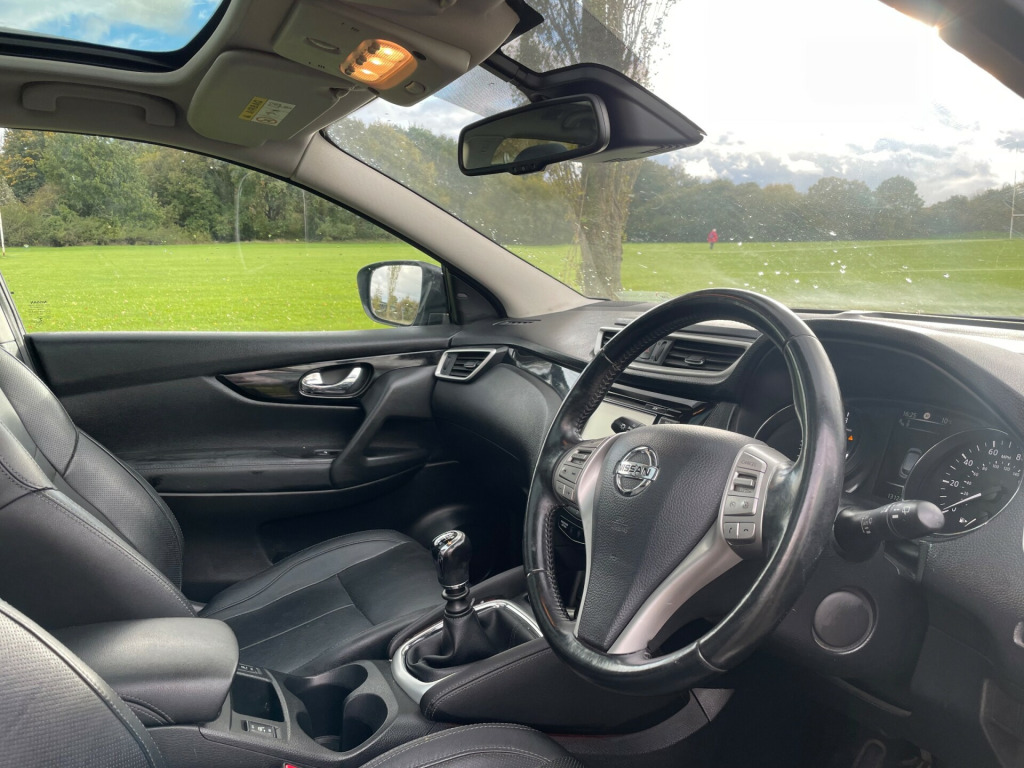 12 services 2keys Drives superb Will come with a new mot Just serviced Panoramic roof with electric sliding blind Heated leather interior 19 inch alloy wheels FullPrivacy glass 360 ca,eras so 5 in total along with front and rear parking sensors Great spec car for very low money ! 3 months warranty included This 2014 Nissan Qashqai dCi Tekna is a well maintained example of this popular family car. It features a 1.5 litre diesel engine and comes in the desirable Tekna trim. You'll appreciate the convenience of intelligent key with keyless entry, allowing you to unlock and start the car without reaching for your keys. Inside, enjoy the spacious feel provided by the panoramic glass roof, which includes a fixed panoramic sunroof. For your comfort, the front seats are heated, and the integrated Bluetooth system allows for seamless telephone connectivity. Parking is made easier with the rear view camera, offering valuable parking assistance.This Qashqai stands out with its impressive fuel economy, achieving up to 74 miles per gallon, which is significantly better than many other vehicles in its class. Furthermore, its low CO2 emissions contribute to a more environmentally friendly drive. The low insurance group rating also means that running costs are kept to a minimum, making this a sensible choice for many drivers.