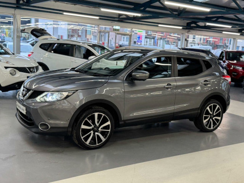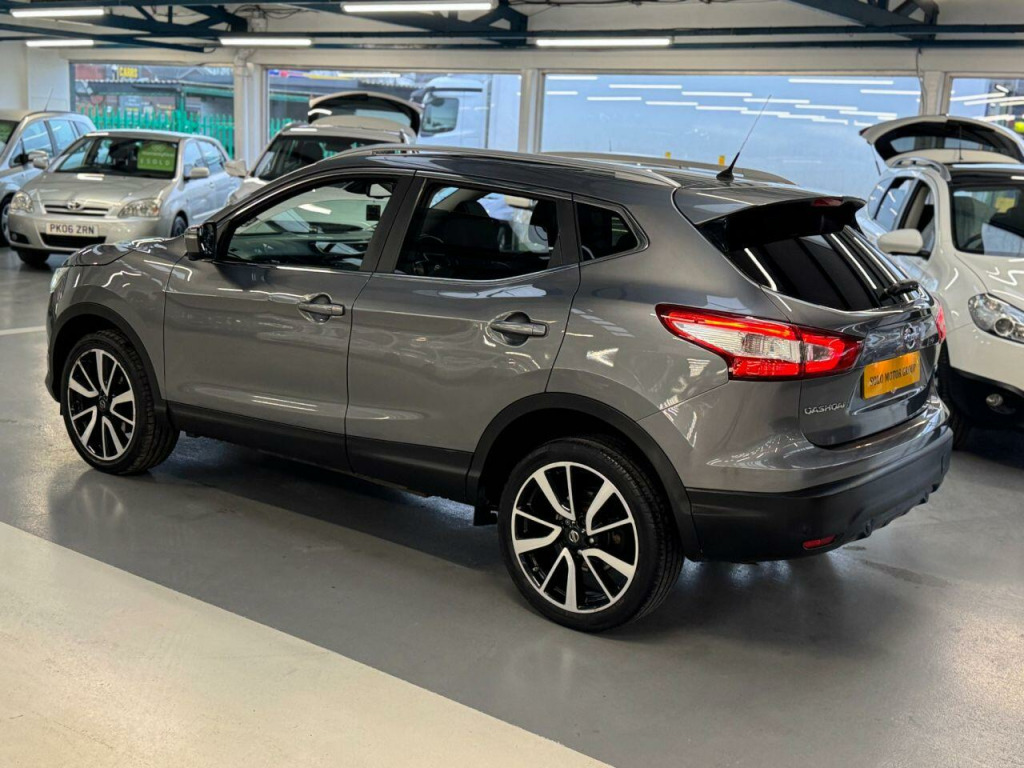 This 2014 Nissan Qashqai dCi Tekna boasts a full service history and has had only two owners, offering excellent provenance. This well maintained Tekna trim model features a 1.5 litre diesel engine and comes with 12 months MOT for your peace of mind. You'll find parking is made easier with front and rear parking sensors, complemented by a rear view camera. The Qashqai also includes Bi-LED headlights for improved visibility and Bluetooth integration for seamless telephone connectivity.This Qashqai stands out with an impressive fuel economy of 74 miles per gallon, indicating it is more economical than many similar vehicles. Furthermore, its low CO2 emissions and low insurance group highlight its cost effectiveness for everyday driving. A clear vehicle history check confirms its sound condition, making this a sensible choice for your next car. in alloy wheels - 5-spoke, 6 speakers, 60-40 split rear folding seats, abs - anti lock brakes, aux-in socket, airbag - driver, airbag - passenger, airbags - curtain, airbags - side, alarm, armrest - rear, around view monitor - 360 bird-view, auto dimming rear view mirror, auto rain sensing wipers, black honeycomb front grille, blind spot warning, body coloured handles, brake assist, bumpers - body coloured, chrome glass surround, climate control - dual zone, colour side camera, cruise control with speed limiter, dab radio, door mirrors - body coloured, door mirrors - power fold and heated, driver attention alert, driver seat height adjustment, ebd - electronic brakeforce distribution, esp - electronic stability programme, electric speed-sensitive power steering, fatigue alert, front armrest, front collision avoidance, front fog lights, front and rear electric windows, head restraints - active front, head restraints - rear, headlights - auto, headlights - auto high-low beam, headlights - automatic levelling, headlights - bi-led, heated windscreen, hill start assist, isofix childseat anchorage points - middle row outer seats, immobiliser, intelligent key, intelligent park assist, interior ambient lighting, led daytime running lights, lane departure warning, leather gear knob, leather steering wheel, luggage board system, lumbar support, moving object detection, parking sensor - front, pollen filter, puncture repair kit, push start-stop button, radio-cd, rear cupholder, rear door child locks, rear parking sensor, rear privacy glass, rear view camera, roof rails, safety shield, satellite navigation - nissan connect, seats - drivers electric adjustment, seats - heated front, service indicator, smart vision pack, speed-sensitive autolock function, steering wheel mounted audio controls, tpms - tyre pressure monitoring system, telephone - bluetooth integration, tilt and telescopic adjustable steering wheel, touch screen 7in, traction control, traffic sign recognition, trip computer, usb port, e-pkb - electric parking brake, panoramic glass roof, leather - graphite