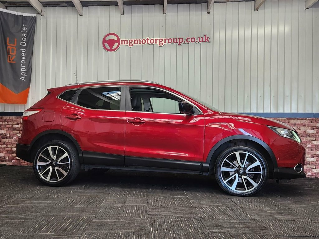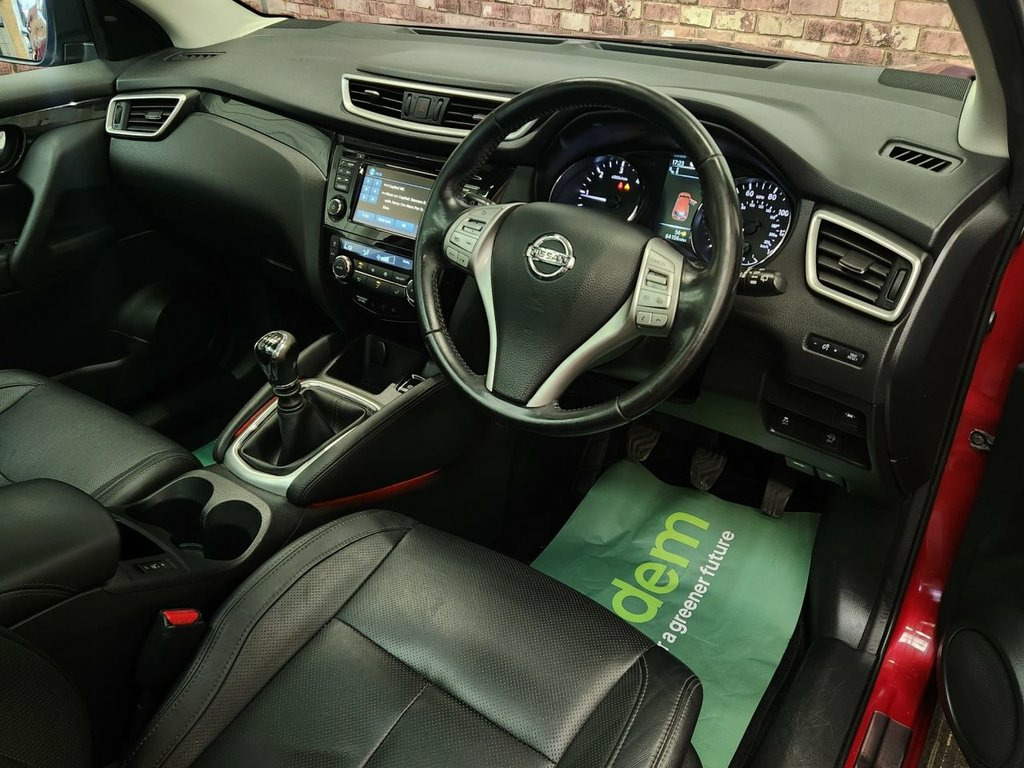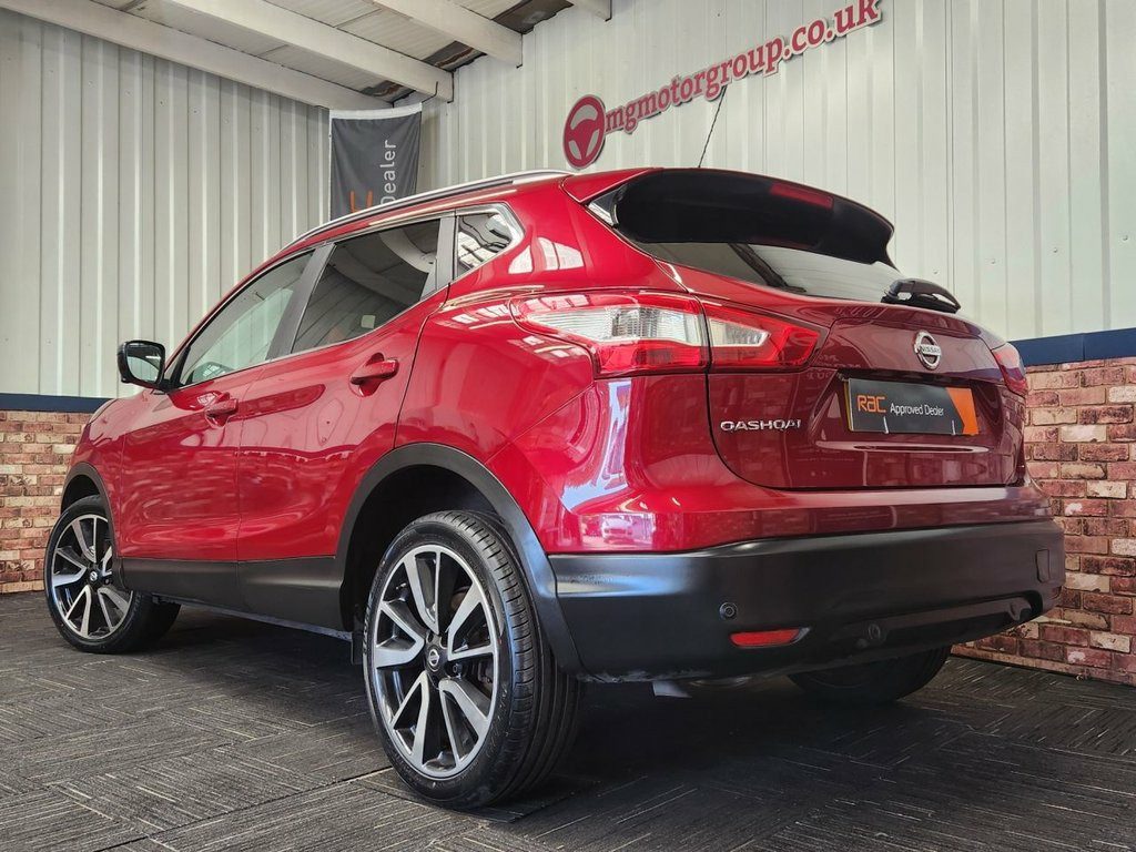 MG Motor Group are pleased to offer this stunning Nissan Qashqai 1.5 dCi Tekna finished in Magnetic Red with Black Cloth interior. 2 keys with comprehensive service history, this includes multiple dealer services & a recent service carried out in house. Excellent condition throughout and a true credit to its previous onwers. Great spec that includes Alloy Wheels, LED Daytime Running Lights, Front & Rear Parking Sensors with 360 Cameras, Panoramic Roof, Sat Nav, Bluetooth Connectivity, Cruise Control, Dual Zone Climate Control, Heated Seats and much more. Magnetic Red, Panoramic Sunroof with One Touch Shade, 19in Alloy Wheels - 5-Spoke, 3 x 3-Point Rear Seatbelts with ELR, 5in High Definition Full Colour TFT Scre, 6 Speakers, 60-40 Split Rear Folding Seats, AUX Socket for MP3 Player, Alarm, Automatic Folding Door Mirrors, Automatic Lights and Wipers, Black Honeycomb Front Grille, Bluetooth, Body-coloured Bumpers - Handles and Mirr, CD Radio, Chrome Glass Surround, Cruise Control with Speed Limiter, Drive Computer, Driver Seat Height Adjustment, Driver-Passenger-Side and Curtain Airbag, Drivers Side One-touch and Anti-trap Win, Dual Zone Climate Control Air Conditioni, ESP ABS EBD and Brake Assist, Electric Speed-Sensitive Power Steering, Exec