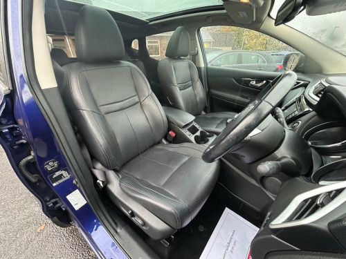 Finished in Ink blue, Experience premium comfort, efficiency, and style with this 2017 (17) Nissan Qashqai 1.5 dCi Tekna, the top-of-the-range model offering excellent economy and high-end features throughout. Powered by the 1.5-litre dCi diesel engine producing 110PS, it delivers smooth performance and up to 70 mpg, making it one of the most efficient SUVs in its class. This example benefits from an impeccable full service history with 8 recorded services, most recently carried out in September 2025, showing clear evidence of careful ownership. The Tekna trim comes fully loaded with full leather upholstery, heated front seats, panoramic glass roof, 360° parking cameras, Bose premium sound system, satellite navigation, cruise control, and smart keyless entry. Presented in superb condition, this Qashqai has been fully inspected and prepared to our high retail standards 19in Alloy Wheels - 5-Spoke, 3 x 3-Point Rear Seatbelts with ELR, 5in High Definition Full Colour TFT Scre, 6 Speakers, 60-40 Split Rear Folding Seats, Alarm, Automatic Folding Door Mirrors, Automatic Lights and Wipers, AUX Socket for MP3 Player, Black Honeycomb Front Grille, Bluetooth, Body-coloured Bumpers - Handles and Mirr, CD Radio, Chrome Glass Surround, Cruise Control with Speed Limiter, Drive Computer, Driver Seat Height Adjustment, Driver-Passenger-Side and Curtain Airbag, Drivers Side One-touch and Anti-trap Win, Dual Zone Climate Control Air Conditioni, e-PKB - Electric Parking Brake, Electric Speed-Sensitive Power Steering, ESP ABS EBD and Brake Assist, Executive Pack, Front and