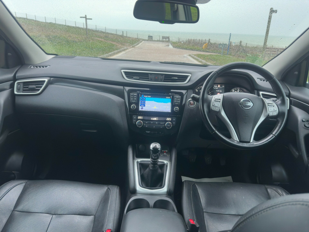 Cliff Motors are proud to present this pristine example of the 2016 Nissan Qashqai Tekna in Black having covered 96,000 miles since the registration in 2016. The car has a 1.5 dCi diesel engine, a 6-speed manual gearbox, and is ULEZ compliant! The car has been well maintained with part service history and is a pleasure to drive. It also benefits from a Long MOT until 18th May 2026! It's also just £20 a year to tax, making it an economical choice for families and commuters alike! The car is the Tekna spec, with equipment such as 12V Socket, 19'' Alloy Wheels, 6 Speakers, ABS, Alarm, AUX Input, Automatic Headlights, Automatic Windscreen Wipers, Blind Spot Warning, Bluetooth, Climate Control, Colour Side Camera, Cruise Control, Driver Attention Alert, Electric Mirrors, Electric Parking Brake, Electric Windows, ESP, Fatigue Alert, Fog Lights, Front Collision Avoidance, Full Leather Interior, Heated Mirrors, Heated Seats, Immobiliser, Intelligent Park Assist, Interior Ambient Lighting, ISOFIX, Keyless Entry, Lane Departure Warning, LED Daytime Running Lights, Panoramic Roof, Parcel Shelf, Parking Sensors (Front And Rear), Pollen Filter, Puncture Kit, Rear Tinted Windows, Remote Central Locking, Reversing Camera, Roof Rails, Satellite Navigation, Smart Vision Pack, Seatback Pockets, Start Button, Start Stop System, Steering Wheel Controls, Traction Control, Traffic Sign Recognition, Trip Computer, Tyre Pressure Monitoring System, and USB Input. Finally, there is a complimentary Warranty First Dynamic 3-month warranty included with this car! The warranty ensures that your car ownership experience is stress-free and you have peace of mind. There is also the option to extend both the coverage level and length to 48 months. Finance is available on this vehicle through Hawkstone Finance, with flexible options to suit your budget. All vehicles sold by Cliff Motors also benefit from an oil service and New MOT (if required) before sale! Finance is available on our vehicles through Hawkstone Finance. Please contact us for more details. We are happy to accept part-exchange and deliver nationwide. We are open 6 days a week (Sunday by appointment) so get in touch today on 07543 069999 or come and visit us at 291 South Coast Road, Peacehaven, BN10 7HX!