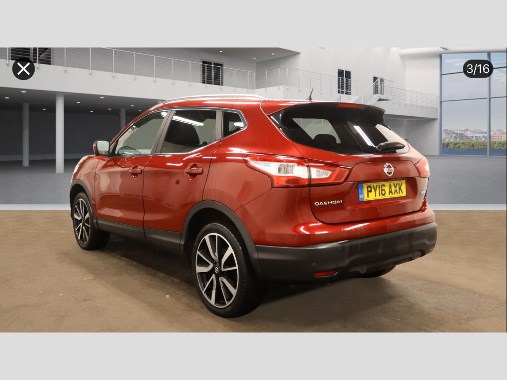 This 2016 Nissan Qashqai 1.5 dCi Tekna SUV with 117532 miles on the clock is a reliable diesel vehicle that boasts 5 doors, 5 seats, and ULEZ compliance. With MOT valid until 08/08/2026, this SUV is ready to hit the road with confidence. The 19in Alloy Wheels, Automatic Folding Door Mirrors, Black Honeycomb Front Grille, and Chrome Glass Surround add a touch of style to this practical and spacious car. Ideal for families or those who value comfort and versatility, this Qashqai is equipped with a manual transmission, Euro 6 (s/s) engine, and 110 ps power. Whether you're running errands in the city or embarking on a weekend adventure, this SUV is the perfect combination of power, efficiency, and modern design.FINANCE AVAILABLE,LEADING SPECIALIST FOR SUB-PRIME AND FINANCING DIFFICULTIES.ALL CARS COME WITH A FULL VALET,MINIMUM 3MONTHS WARRANTY AND AT LEAST 6 MONTHS MOT. NEW MOT AVAILABLE ON REQUEST.retail price is It , EXTENDED WARRANTIES OF 6 TO 36 MONTHS AVAILABLE ON REQUEST.ESTABLISHED HERE SINCE 2013 in alloy wheels - 5-spoke, automatic folding door mirrors, black honeycomb front grille, body-coloured bumpers - handles and mirrors, chrome glass surround, front and rear electric windows, puncture repair kit, rear privacy glass, roof rails - satin silver, 3 x 3-point rear seatbelts with elr, alarm, driver-passenger-side and curtain airbags, drivers side one-touch and anti-trap window, esp abs ebd and brake assist, front seat belt height adjustment, front seat belts with load limiter and pretensioners, hill start assist, isofix child seat anchoring points, immobiliser, intelligent key, rear door child locks, safety shield, smart vision pack, e-pkb - electric parking brake, 5in high definition full colour tft screen combimeter, 6 speakers, aux socket for mp3 player, bluetooth, cd radio, 60-40 split rear folding seats, driver seat height adjustment, dual zone climate control air conditioning, executive pack, front centre console and armrest, head restraints - 3 rear, heat pack, height adjustable front head restraints, interior ambient lighting, leather gear knob, leather steering wheel, luggage board system, push start-stop button, rear seat armrest with 2 cupholders, remote audio control, seats - drivers lumbar support, seats - passengers height adjustment, tech pack, tilt and telescopic adjustable steering wheel, automatic lights and wipers, front fog lamps with chrome ring, headlights - automatic levelling, headlights - bi-led, led signature daytime running lights, cruise control with speed limiter, drive computer, electric speed-sensitive power steering, intelligent park assist, nissan chassis controls, selectable steering - normal or sport, tpms - tyre pressure monitoring system