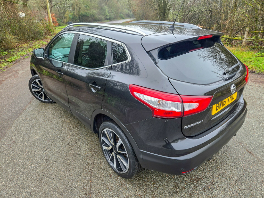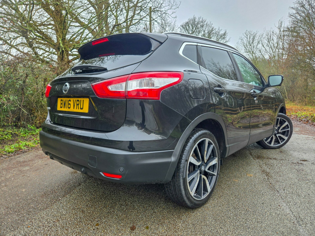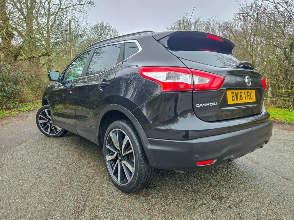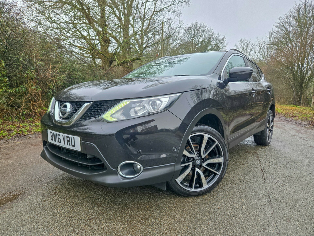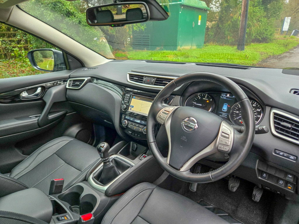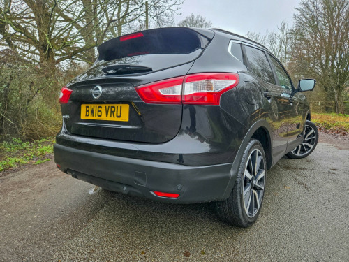 JUST SERVICED,NEW MOT,LEATHER,2 KEYSThis 2016 Nissan Qashqai 1.5 dCi Tekna SUV with 99890 miles on the clock is a reliable and efficient diesel vehicle that is ULEZ compliant, making it perfect for city driving. With 5 seats and 5 doors, this SUV offers plenty of space for passengers and cargo. The MOT expires on 08/01/2027, providing peace of mind for the future. Featuring 19in Alloy Wheels, Automatic Folding Door Mirrors, Black Honeycomb Front Grille, and Chrome Glass Surround, this car exudes style and sophistication. The Euro 6 engine delivers 110 ps, ensuring a powerful and smooth driving experience. With its sleek design and top-notch features, this Nissan Qashqai is the perfect choice for those in search of a dependable and stylish SUV., in alloy wheels - 5-spoke, automatic folding door mirrors, black honeycomb front grille, body-coloured bumpers - handles and mirrors, chrome glass surround, front and rear electric windows, puncture repair kit, rear privacy glass, roof rails - satin silver, 3 x 3-point rear seatbelts with elr, alarm, driver-passenger-side and curtain airbags, drivers side one-touch and anti-trap window, esp abs ebd and brake assist, front seat belt height adjustment, front seat belts with load limiter and pretensioners, hill start assist, isofix child seat anchoring points, immobiliser, intelligent key, rear door child locks, safety shield, smart vision pack, e-pkb - electric parking brake, 5in high definition full colour tft screen combimeter, 6 speakers, aux socket for mp3 player, bluetooth, cd radio, 60-40 split rear folding seats, driver seat height adjustment, dual zone climate control air conditioning, executive pack, front centre console and armrest, head restraints - 3 rear, heat pack, height adjustable front head restraints, interior ambient lighting, leather gear knob, leather steering wheel, luggage board system, push start-stop button, rear seat armrest with 2 cupholders, remote audio control, seats - drivers lumbar support, seats - passengers height adjustment, tech pack, tilt and telescopic adjustable steering wheel, automatic lights and wipers, front fog lamps with chrome ring, headlights - automatic levelling, headlights - bi-led, led signature daytime running lights, cruise control with speed limiter, drive computer, electric speed-sensitive power steering, intelligent park assist, nissan chassis controls, selectable steering - normal or sport, tpms - tyre pressure monitoring system