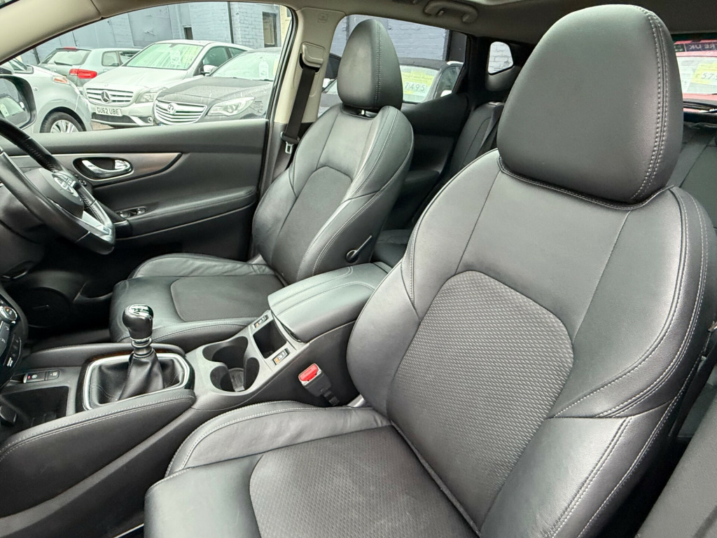 Sussex Vehicle Solutions Ltd are delighted to present this Nissan Qashqai 1.5 dCi Tekna Euro 6. Across all our stock, we ensure servicing is up to date, that there is at least 6 months MOT remaining, and we provide warranty options of 3/6/12 months. As an AA Approved dealership, all vehicles come with 12 months AA breakdown cover free of charge. We can offer bespoke finance packages to suit all deal sizes and credit profiles, with rates starting from 8.9% APR. Sussex Vehicle Solutions is a family run business and we pride ourselves on giving excellent customer service in a pressure-free environment. If you have any questions, please do not hesitate to get in touch. in alloy wheels, body coloured door mirrors, body coloured handles, chrome glass surround, electric heated auto-folding door mirrors, front and rear electric windows, glass roof pack, led pack, matt silver roof rails, puncture repair kit, rear roof spoiler, 3 height adjustable rear headrests, 60-40 split rear folding seats, ambient lighting centre console, auto wipers, boot light, carbon graphite dash trim, centre console storage and armrest, chrome interior door handles, daytime running lights dip function when turn signal applied, driver seat height adjustment, drivers seat with manual lumbar support, dual zone climate control air conditioning, electrically adjustable drivers seat, executive pack, front and rear door pockets with drink holders, heat pack, height adjustable front head restraints, individual rear seat reading lights, interior ambient lighting, leather d shaped steering wheel, leather gear lever, leather knee pad, luggage board system, monoform front seats with plastic backboard, one touch 4 x auto windows with illuminated switches, parcel shelf - stow function under luggage board, passengers seat with manual lumbar support, pollen filter, remote audio control, seats - passengers height adjustment, start push button, steering wheel mounted audio controls, synthetic leather wrapped door handle with contrasting stitching, tech pack, tilt and telescopic adjustable steering wheel, am-fm-cd audio system with dab, aux socket for mp3 player, advanced drive assist display - 5in tft coloured screen, bluetooth with audio streaming, bose 8 speaker premium audio system, front 12v power sockets x2, nissan connect 7in touchscreen navigation and entertainment system, rear usb port, smartphone app integration, usb port, autohold function - stand still assist, driver-passenger-side and curtain airbags, esp abs ebd and brake assist, electric parking brake, front and rear seat belts with load limiter and pretensioners, front and rear seatbelt warning, height adjustable front seatbelts, hill start assist, isofix child seat anchoring points - rear x2, nissan anti theft system immobiliser, nissan intelligent key, passenger airbag deactivation system, rear door child locks, rear wiper with reverse link, remote central locking with superlocking, safety shield plus, smart vision pack, thatcham category 1 alarm, cruise control with speed limiter, drive assist pack, electric speed-sensitive power steering, intelligent around view monitor, intelligent park assist, nissan chassis controls, outside temperature sensor, rear view camera, selectable steering - normal or sport, tpms - tyre pressure monitoring system, trip computer, underbody vortex generators, front fog lights, intelligent auto headlight, led signature daytime running lights