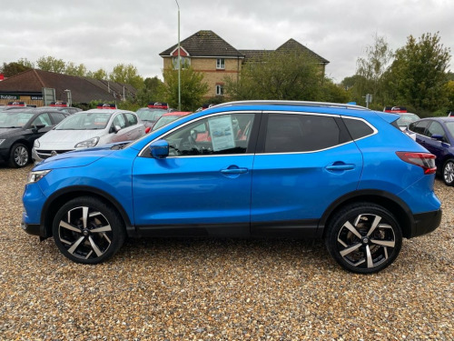 12 MONTHS MOT+MAIN DEALER SERVICE HISTORY+SATELLITE NAVIGATION SYSTEM+BOSE PREMIUM SOUND SYSTEM+BLUETOOTH+DUAL ZONE CLIMATE CONTROL AIR-CONDITIONING+AUTOMATIC HEADLIGHTS+AUTOMATIC WINDSCREEN WIPERS+HEATED HALF LEATHER UPHOLSTERY+PANORAMIC GLASS ROOF+FRONT & REAR PARKING ASSISTANCE+METALLIC 'VIVID BLUE' PAINT+19 INCH ALLOY WHEELS. At Haverhill Car Xchange we would like to offer you our Nissan Qashqai Tekna SUV which has been finished in a metallic 'Vivid Blue paint with luxurious HEATED Graphite half leather upholstery. Excellent Specification Includes a 7 Inch Nissan Connect Touchscreen Satellite Navigation System, Bose Premium 8 Speaker Audio System, DAB Radio-CD Player, Bluetooth Audio Streaming, Smartphone Integration, AUX Socket for MP3 Player, USB Ports in Front and Rear, Dual Zone Climate Control Air-Conditioning, Cruise Control with Speed Limiter, Front and Rear Electric Windows, Body Coloured Bumpers/Door Handles/Door Mirrors with Integrated Side Indicators and Rear Roof Spoiler, Automatic Intelligent Headlights, LED Daytime Running Lights, Front Fog Lights, Automatic Rain-Sensing Windscreen Wipers, Glass Roof Pack, Heated Seats, Front and Rear Parking Assistance with Intelligent Around-View Monitor, Leather Steering Wheel with Mounted Audio Controls, 19 Inch Alloy Wheels, Electric Speed Sensitive Power Steering, Auto Hold Function-Stand Still Assist, Hill Start Assist, Child Locks on Rear Doors, Safety Shield Plus, ABS Break Assist, Airbags, Ala Part Leather - Graphite, Vivid Blue, 19in Alloy Wheels, 3 Height Adjustable Rear Headrests, 60-40 Split Rear Folding Seats, AM-FM-CD Audio System with DAB, AUX Socket for MP3 Player, Advanced Drive Assist Display - 5in TFT , Ambient Lighting Centre Console, Auto Wipers, AutoHold Function - Stand Still Assist, Bluetooth with Audio Streaming, Body Coloured Door Mirrors, Body Coloured Handles, Boot Light, Bose 8 Speaker Premium Audio System, Carbon Graphite Dash Trim, Centre Console Storage and Armrest, Chrome Glass Surround, Chrome Interior Door Handles, Cruise Control with Speed Limiter, Daytime Running Lights Dip Function When, Drive Assist Pack, Driver Seat Height Adjustment, Driver-Passeng