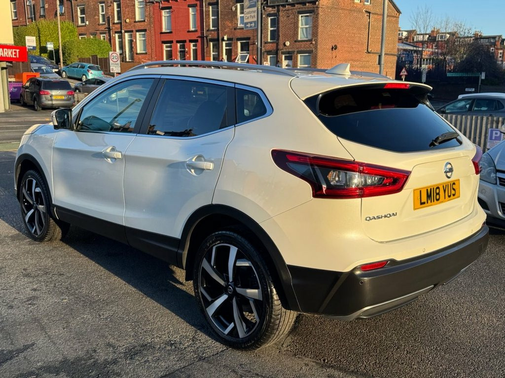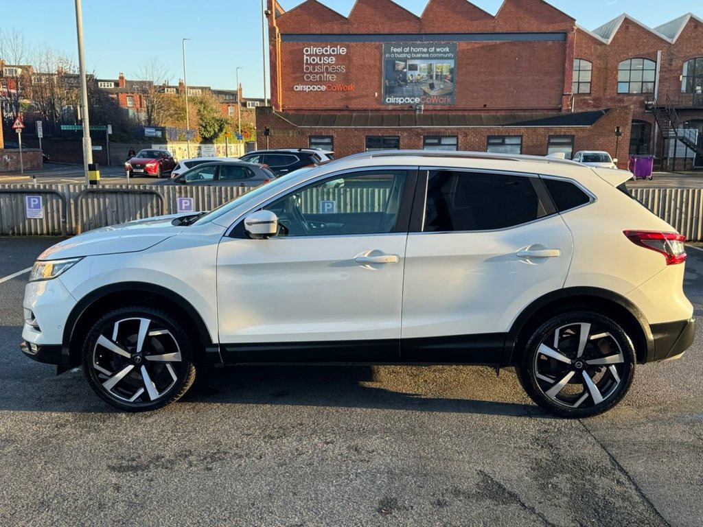 TOP SPEC EXAMPLE Nissan Qashqai 1.5 Diesel Tekna in Storm white sitting on 19" alloy wheels. Full service history with fully stamped service book. Spec includes half Leather seats, heated front seats, electric drivers seat, sat nav, Bluetooth, DAB radio, reverse camera with front/rear parking sensors, panoramic glass sunroof with electric blind, power folding wing mirrors, keyless - keyless entry / power button start button, climate control with A/C, lane departure warning system, multi-function steering with cruise control, auto lights, auto headlights, trip computer and much more. Call 0113 2636003 or visit leedsmotorcompany.co.uk. Storm White, Glass Roof Pack, 19in Alloy Wheels, 3 Height Adjustable Rear Headrests, 60-40 Split Rear Folding Seats, AM-FM Radio and CD Player, AUX Socket, Adaptive Front Lighting System, Advanced Drive Assist Display - 5in TFT , Ambient Lighting Centre Console, Anti Dazzle Rear View Mirror, Auto Wipers, AutoHold Function - Stand Still Assist, Bluetooth, Body Coloured Door Mirrors, Body Coloured Handles, Boot Light, Bose 8 Speaker Premium Audio System, Carbon Graphite Dash Trim, Chrome Glass Surround, Chrome Interior Door Handles, Cruise Control with Speed Limiter, DAB Digital Radio, Daytime Running Lights Dip Function When, Driver Seat Height Adjustment, Driver-Passenger-Side and Curtain Ai