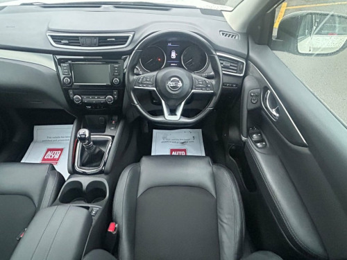 Enjoy premium comfort, strong efficiency and a high level of specification with this 2019 Nissan Qashqai 1.5 dCi Tekna, a well-equipped family SUV that has covered 59,000 miles from new. Powered by the refined and economical 1.5 dCi diesel engine producing 115 ps, paired with a manual gearbox, it delivers excellent fuel economy and a smooth, relaxed driving experience ideal for both town and motorway use. As the Tekna model, this Qashqai comes loaded with desirable features including part leather interior, heated front seats, panoramic glass roof, satellite navigation, 360-degree Around View Monitor, front and rear parking sensors, adaptive cruise control, Bose premium sound system, keyless entry and start, dual-zone climate control, LED headlights, and striking 18-inch alloy wheels. Combining practicality, comfort and advanced technology, this Nissan Qashqai Tekna represents outstanding value and is an excellent choice for anyone seeking a well-specified, reliable and economical SUV. 19in Alloy Wheels, 3 Height Adjustable Rear Headrests, 60-40 Split Rear Folding Seats, Advanced Drive Assist Display - 5in TFT , AM-FM-CD Audio System with DAB, Ambient Lighting Centre Console, Auto Wipers, AutoHold Function - Stand Still Assist, AUX Socket for MP3 Player, Bluetooth with Audio Streaming, Body Coloured Door Mirrors, Body Coloured Handles, Boot Light, Bose 8 Speaker Premium Audio System, Carbon Graphite Dash Trim, Centre Console Storage and Armrest, Chrome Glass Surround, Chrome Interior Door Handles, Cruise Control with Speed Limiter, Daytime Running Lights Dip Function When, Drive Assist Pack, Driver Seat Height Adjustment, Driver-Passenger-Side and Curtain Airbag, Drivers S