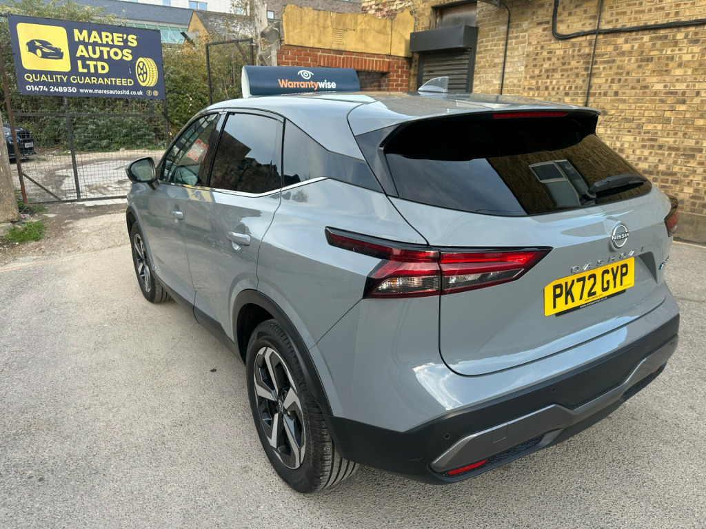? Qashqai N-Connecta E-Power A (72 REG)? 1.5, Petrol, 1.5H 190 E-Power HEV CVT Auto Start/Stop? MOT: 05 February 2026? MILEAGE: 37719 Miles? HPI STATUS: Fully Cleared? Power Steering, Android/Apple CarPlay AUX, Central Locking,? Engine & Gearbox in Excellent Condition? BODYWORK IS AN 9.5 OUT OF 10? INTERIOR IS AN 10 OUT OF 10? ROAD TAX: 107.25/6 MONTHS, 195/YEAR? 5 SEATER? 2 PREVIOUS KEEPERS? CATEGORY S? ULEZ FREE? 12 MONTHS WARRANTYKey(s) - 2, Privacy Glass, Air Conditioning, CO2 Emissions -120 g/km, 188BHP, Alloy Wheels, The vehicle Has been Fully Checked , Everything Is In Excellent Condition and the car has just been fully serviced., v power sockets in dash and luggage space, 6 speakers, am-fm audio system with dab, bluetooth with audio streaming, emergency and breakdown call, front usb connections - type a and type c, google maps services - search - weather - 3d maps and google street view, nissan connect 12.3in touchscreen infotainment system, nissanconnect navigation, rear usb charging only ports - type a and type c, remote control services - door locks - lights - horn and car locator, shark fin antenna, telematics - notifications and connectivity services, tomtom services live traffic, virtual personal assistant and firmware over the air capability, wired android auto, wireless apple carplay, 18in alloy wheels - diamond cut, body coloured handles, body coloured mirror caps, body side moulding, chrome side window finisher, door mirror - electrically adjustable - heated - auto folding with led turn indicator, one touch front and rear electric windows with remote opening-closing, partially body coloured bumpers, privacy glass, puncture repair kit, rear roof spoiler, rear styling plate, splash free wipers, super uv and infrared cut glass, e-power badging, 3 rear headrests, 60-40 split rear folding seats, auto dimming rear view mirror, automatic dual zone climate control with pollen filter, chrome interior door handles, driver seat back pockets, driver and passenger sun visor with illuminated vanity mirror, engine start button, front centre console and armrest, front cupholders x2, front door with bottle holders, full digital 12.3in tft digital combimeter, height adjustable driver seat, height adjustable front headrests, luggage board system, luggage space lighting, multifunctional steering wheel, passenger seat back pockets, rain sensing wipers, rear door with bottle holders, rear seat armrest with 2 cupholders, seats - passengers height adjustment, synthetic leather steering wheel., three blink turn signal, tilt and telescopic adjustable steering wheel, welcome light and console tray ambient lighting, e-power shifter, 3 x 3-point rear seatbelts, abs with ebd and brake assist, auto hold function, auto rear wiper when reversing, curtain airbags, driver and passenger airbags, driver-passenger and rear seatbelt reminder, electric parking brake, engine immobiliser, front seat belts with load limiter and pretensioners, front seatbelt height adjustment, hill start assist, intelligent front emergency braking with pedestrian recognition and cyclist recognition and junction assist, intelligent key, intelligent lane intervention, intelligent rear automatic braking, rear cross traffic alert, rear door child locks, remote central locking with deadlocking, thatcham alarm system, two rear isofix child seat anchorage point with top tether, vdc - vehicle dynamic control, active brake limited slip, blind spot warning, drive modes - sport-normal-eco, e-pedal step, electric speed-sensitive power steering, front parking sensors, intelligent around view monitor, intelligent blind spot intervention, intelligent cruise control, intelligent driver alertness, intelligent forward collision warning, lane departure prevention, lane departure warning, maximum speed limiter, moving object detection, rear parking sensors, rear view camera, tpms - tyre pressure monitoring system, traffic sign recognition, trip computer, follow me home headlights, headlights - high beam assist, headlights - led, intelligent auto headlight, led daytime running lights, led rear lights, rear reversing light - bulb