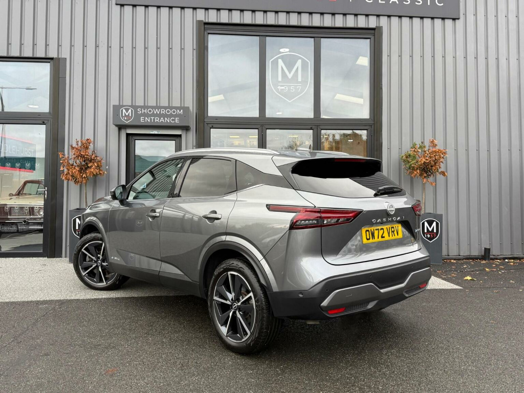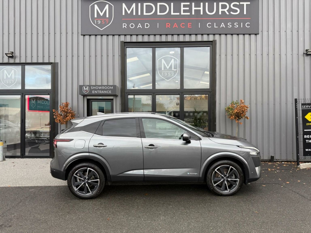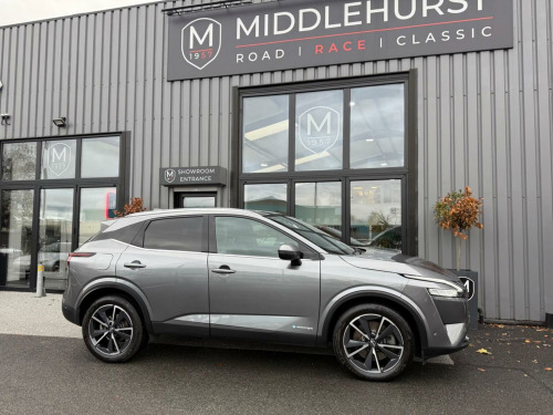 Middlehurst Road Race & Classic present this 2023/72 plate Nissan Qashqai 1.5 e-Power Tekna Automatic (Hybrid) finished in Gun Metallic with part leather blue/black interior. The Tekna model has a fabulous level of specification which includes some of the following features: 12.3 inch digital infotainment screen, heated front seats, electrically heated front windscreen, electric drivers seat, heads up display, electric tailgate, keyless entry/start, panoramic glass roof, 360 parking cameras, wireless Android Auto/Apple CarPlay and MUCH more. It was first registered 16/01/2023 and has covered only 19,671 miles from new by its 2 registered keepers. (ex Nissan GB management car plus 1 local private owner), Full Nissan main dealer service history. Supplied freshly serviced by us with 6 months warranty and its first MOT will be completed once its sold. (Due Jan 2026).