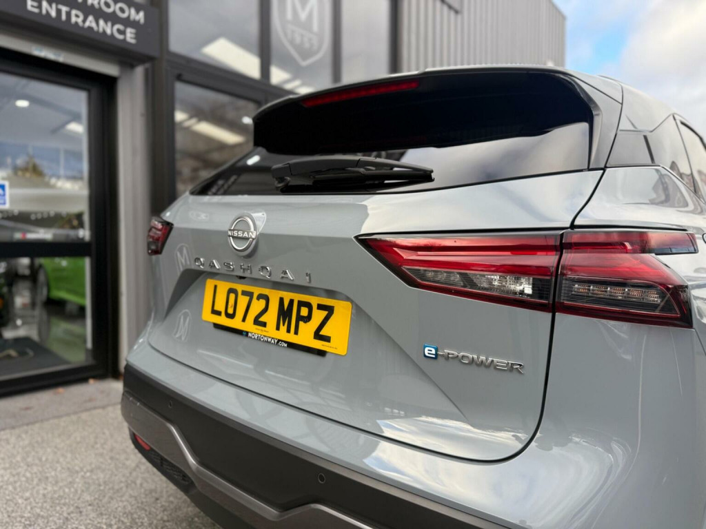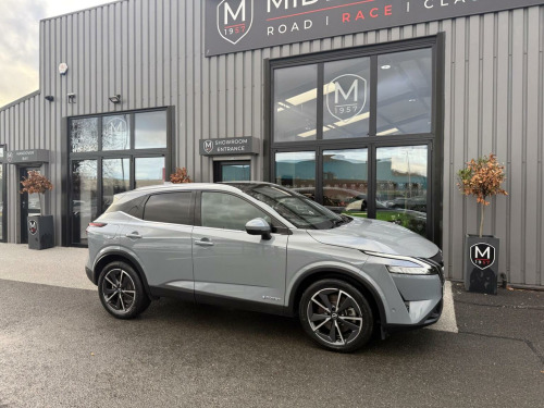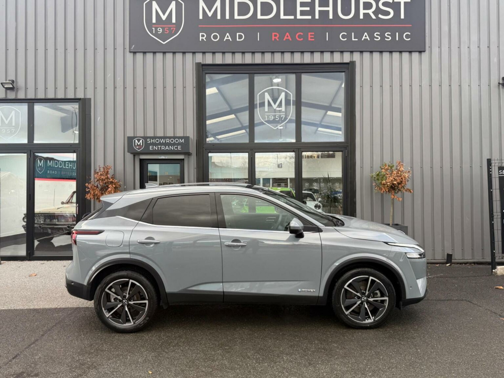 Middlehurst Road Race & Classic present this 2023/72 plate Nissan Qashqai 1.5 e-Power Tekna Automatic (Hybrid) finished in Ceramic Grey with part leather blue/black interior. The Tekna model has a fabulous level of specification which includes some of the following features: 12.3 inch digital infotainment screen, heated front seats, electrically heated front windscreen, electric drivers seat, heads up display, electric tailgate, keyless entry/start, panoramic glass roof, 360 parking cameras, wireless Android Auto/Apple CarPlay and MUCH more. It was first registered 26/11/2022 and has covered only 18,700 miles from new by its 1 private owner, with a full Nissan main dealer service history. Last serviced by Nissan in October 2025 at 18,486 miles. Next service due October 2025 or at 27,486 miles, whichever comes first. Next MOT due 25/11/2026. Supplied with 6 months warranty