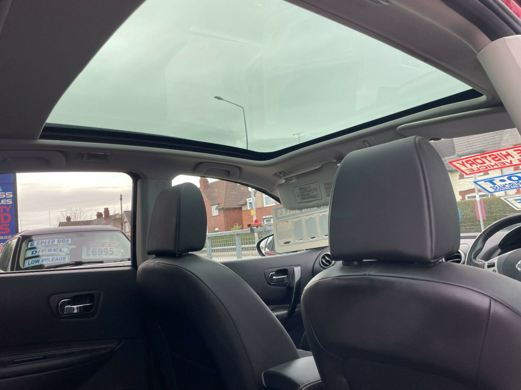 3 MONTH WARRANTY. 12V Socket - Front, 18in Alloy Wheels - Onyx, 360 External Badge, ABS - Anti Lock Brakes, AUX-In Socket, Active Front Head Restraints with Height Adjustment, Active Front Headrests with Height Adjustment, Airbag - Driver, Airbag - Front Passenger, Airbags - Curtain, Airbags - Side, Alarm - Ultrasonic, Aluminium Pedals, Ambient Footwell Lighting, Armrest - Leather, Armrest - Rear, Around View Monitor - 360 Bird-View, Auto Rain Sensing Wipers, Automatic Lighting System, Bluetooth Telephone Integration, Brake Assist, Bumpers - Body Coloured, CD Radio with 6 Speakers, Chrome-Trimmed LCD Combimeter, Cruise Control with Speed Limiter, Door Mirrors - Electric Adjustment and Heated, Door Mirrors - Gloss Black, Drive Computer, Driver Seat Height Adjustment, Dual Zone Climate Control, EBD - Electronic Brakeforce Distribution, ESP - Electronic Stability Programme, Electric Folding Door Mirrors, Electric Speed-Sensitive Power Steering, Electric Windows - Front and Rear, Engine Immobiliser, Front Armrest, Front Cupholders x2, Front Fog Lights, Front Map Reading Lights, Gloss Black Gear Shift Surround, Gloss Black Interior Door Handle, Head Restraints - 3 Rear, ISOFIX Child Seat Anchoring Points, Leather Gear Knob, Leather Steering Wheel, NissanConnect, Panoramic Glass Roof, Parking Aid - Rear, Pollen Filter, Rear Cupholder, Rear Door Child Locks, Rear Parking Sensors, Rear Privacy Glass, Rear Reading Lights, Remote Central Locking, Roof Rails - Gloss Black, Seats - 60-40 Split Foldable Rear Bench, Seats - Drivers Lumbar Support, Speed-sensitive autolock function, Steering Wheel Mounted Audio Controls, Tilt and Telescopic Adjustable Steering Wheel, Traction Control, Trip Computer, USB - iPod Connectivity.