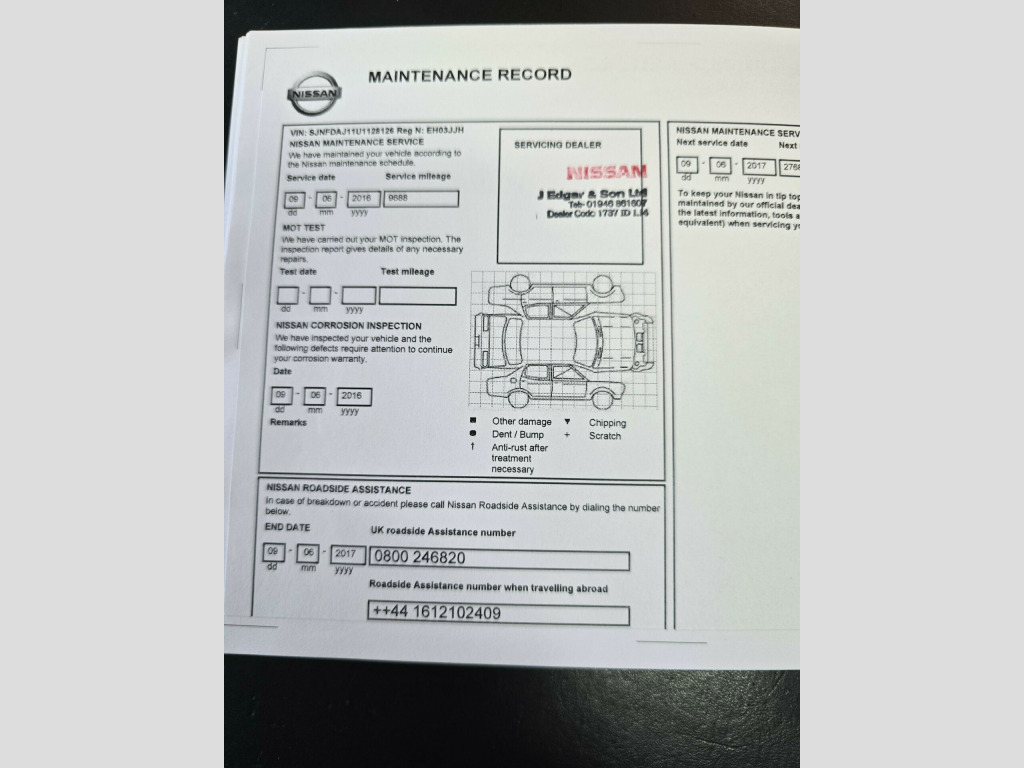 This 2014 Nissan Qashqai dCi Acenta Premium is a remarkable find, having been cherished by just one owner from new and boasting a very low mileage of only 51966 miles. This popular family SUV features a 1.6 litre diesel engine and comes in the well appointed Acenta Premium trim. You'll appreciate the convenience of Intelligent Key with keyless entry, allowing you to unlock and start the car without reaching for your keys. Stay comfortable on every journey with Dual Zone Climate Control, and easily manage calls on the go thanks to Bluetooth integration for your telephone. Parking is made simpler with a rear parking sensor and a rear view camera, providing added confidence when manoeuvring.This Qashqai offers excellent running costs, highlighted by an impressive fuel economy of 64 miles per gallon, making it an economical choice for your daily commute and longer trips. Its low CO2 emissions further contribute to its environmental credentials. Furthermore, this vehicle falls into a low insurance group, which can help to keep your annual insurance costs down. These factors combined indicate that this Nissan Qashqai is a particularly sensible and cost effective option compared to many other vehicles in its class.. 17in Alloy Wheels - 5-Spoke in Silver, 6 Speakers, 60-40 Split Rear Folding Seats, ABS - Anti Lock Brakes, AUX-In Socket, Airbag - Driver, Airbag - Passenger, Airbags - Curtain, Airbags - Side, Alarm, Armrest - Rear, Auto Dimming Rear View Mirror, Auto Rain Sensing Wipers, Black Honeycomb Front Grille, Body Coloured Handles, Brake Assist, Bumpers - Body Coloured, Chrome Glass Surround, Climate Control - Dual Zone, Cruise Control with Speed Limiter, DAB Radio, Door Mirrors - Body Coloured, Door Mirrors - Power Fold and Heated, Driver Seat Height Adjustment, EBD - Electronic Brakeforce Distribution, ESP - Electronic Stability Programme, Electric Speed-Sensitive Power Steering, Front Armrest, Front Collision Avoidance, Front Fog Lights, Front and Rear Electric Windows, Head Restraints - Active Front, Head Restraints - Rear, Headlights - Auto, Headlights - Auto High-Low Beam, Hill Start Assist, ISOFIX Childseat Anchorage Points - Middle Row Outer Seats, Immobiliser, Intelligent Key, Interior Ambient Lighting, LED Daytime Running Lights, Lane Departure Warning, Leather Gear Knob, Leather Steering Wheel, Luggage Board System, Lumbar Support, Panoramic Glass Roof, Parking Sensor - Front, Pollen Filter, Puncture Repair Kit, Push Start-Stop Button, Radio-CD, Rear Cupholder, Rear Door Child Locks, Rear Parking Sensor, Rear Privacy Glass, Rear View Camera, Satellite Navigation - Nissan Connect, Service Indicator, Smart Vision Pack, Speed-Sensitive Autolock Function, Steering Wheel Mounted Audio Controls, TPMS - Tyre Pressure Monitoring System, Telephone - Bluetooth Integration, Tilt and Telescopic Adjustable Steering Wheel, Touch Screen 7in, Traction Control, Traffic Sign Recognition, Trip Computer, USB Port, e-PKB - Electric Parking Brake.